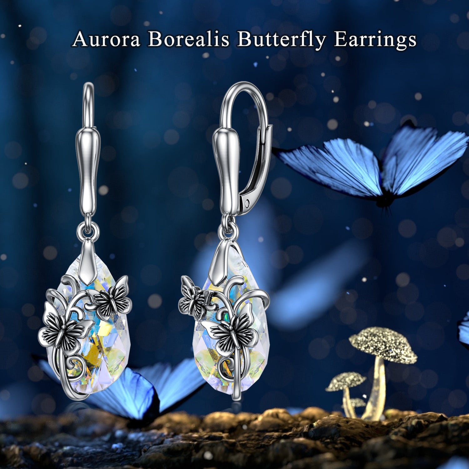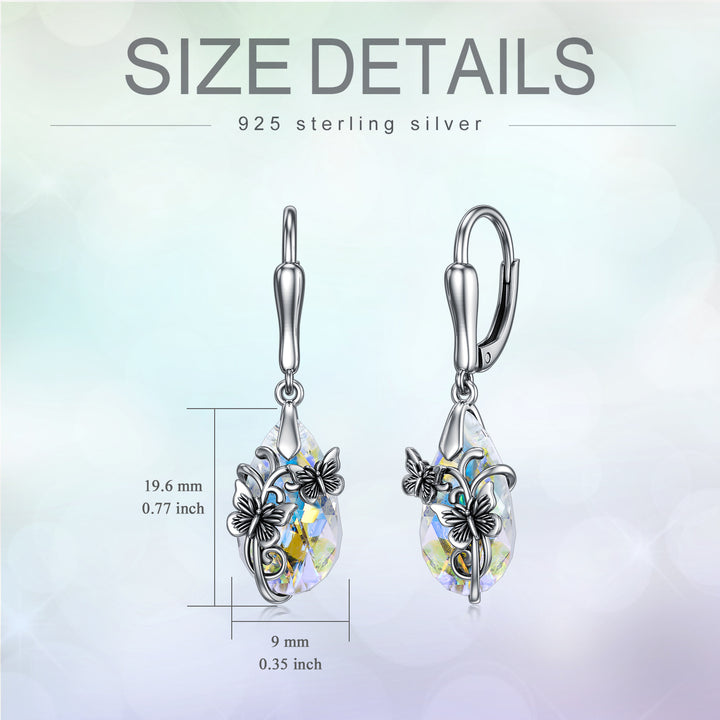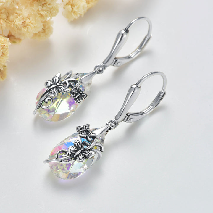These Lever-back Earrings are Meticulously Crafted from High-Quality Sterling Silver with a Retro Silver Finish, featuring Exquisite Crystal-Embellished Butterflies in a Delicate Drop Shape.