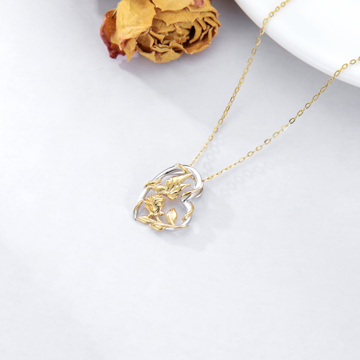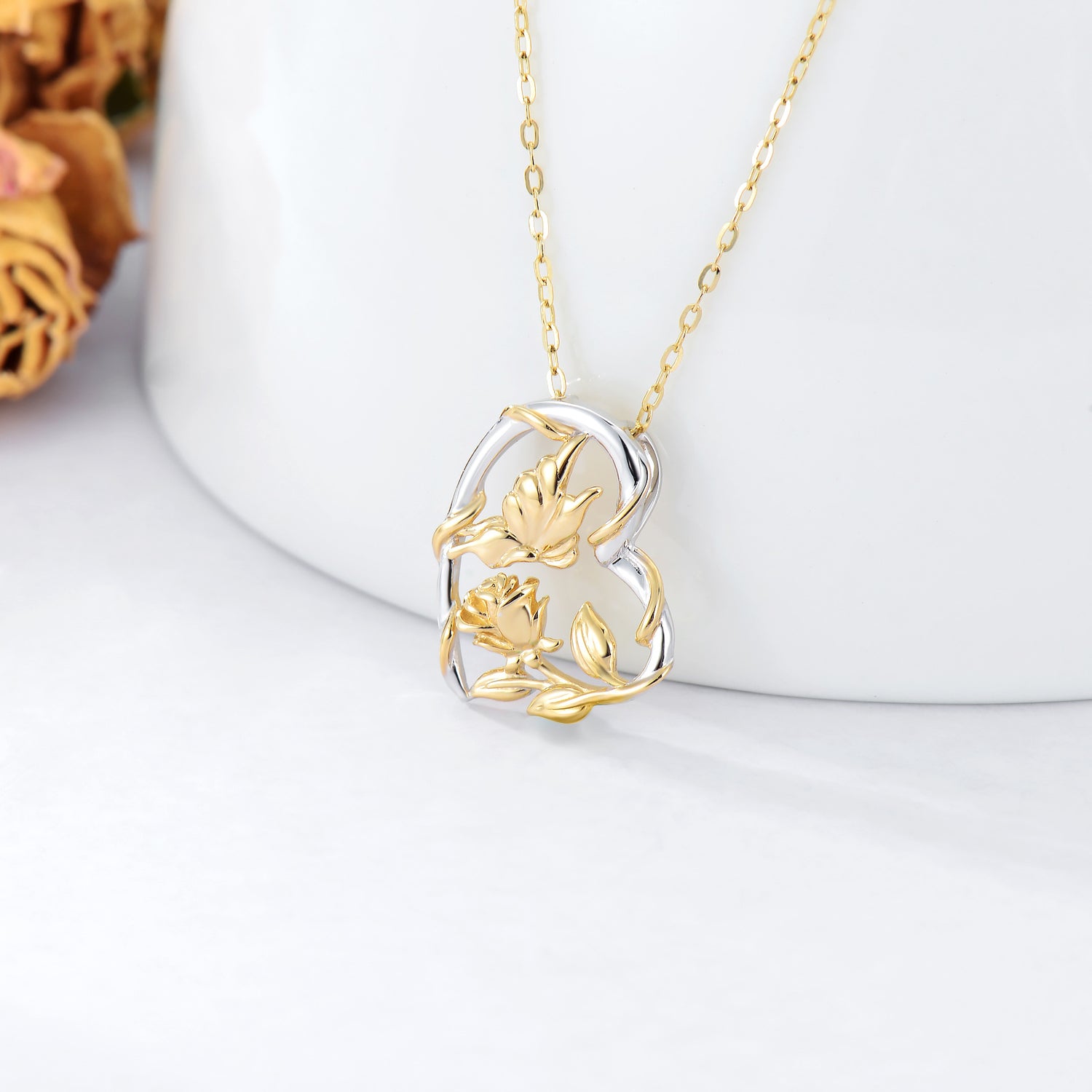 14K Gold Two-Stone Butterfly & Rose Pendant Necklace For Women Best Friends