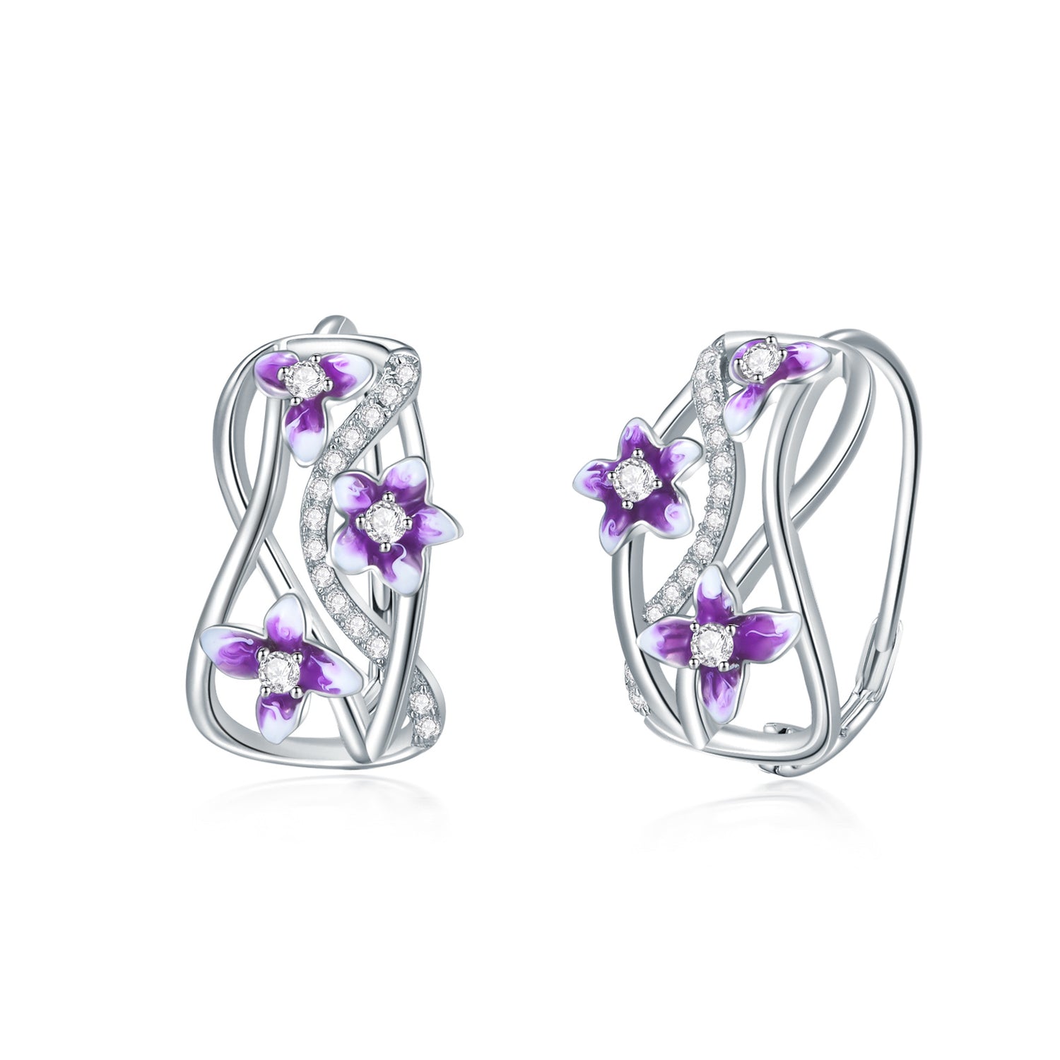 Sterling Silver Zircon Violet Lever-back Earrings