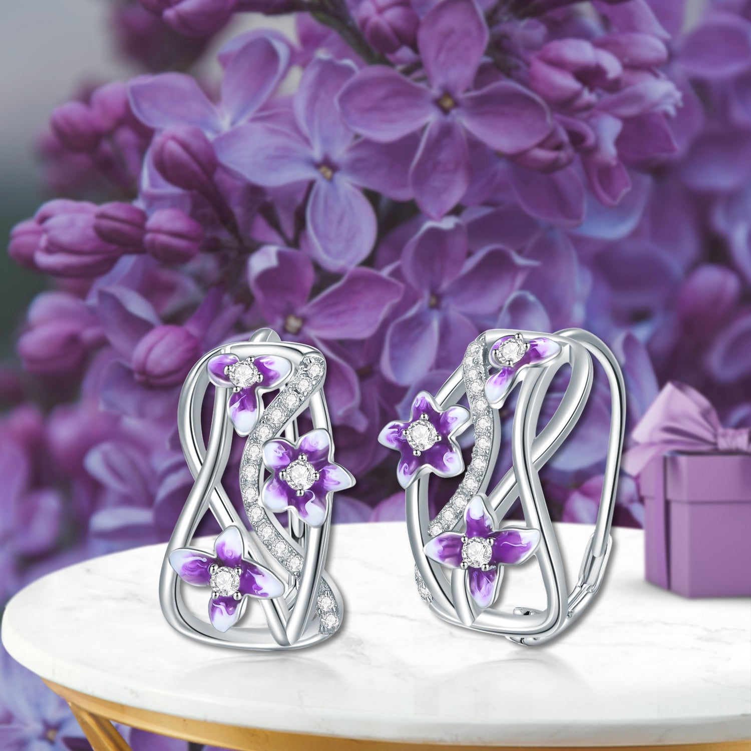 These lever-back earrings are crafted from Solid 925 Sterling Silver, finished with a White Gold Plating, and feature violet Zircon gemstones.