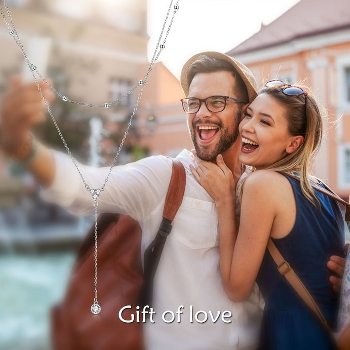 This Sterling Silver Cubic Zirconia 2 Layered Y-necklace with Bead Station Chain by YFN brings together modern sophistication and timeless sparkle, designed for women who love refined elegance with a layered look. Each delicate tier glimmers with hand-set cubic zirconia, offering a radiant, diamond-like brilliance that enhances both casual and formal outfits. The white gold plating elevates the necklace with a luminous, tarnish-resistant finish, while the bead station chain adds graceful movement and texture. Perfect for those who enjoy versatile accessories, this piece effortlessly blends luxury, femininity, and contemporary style.