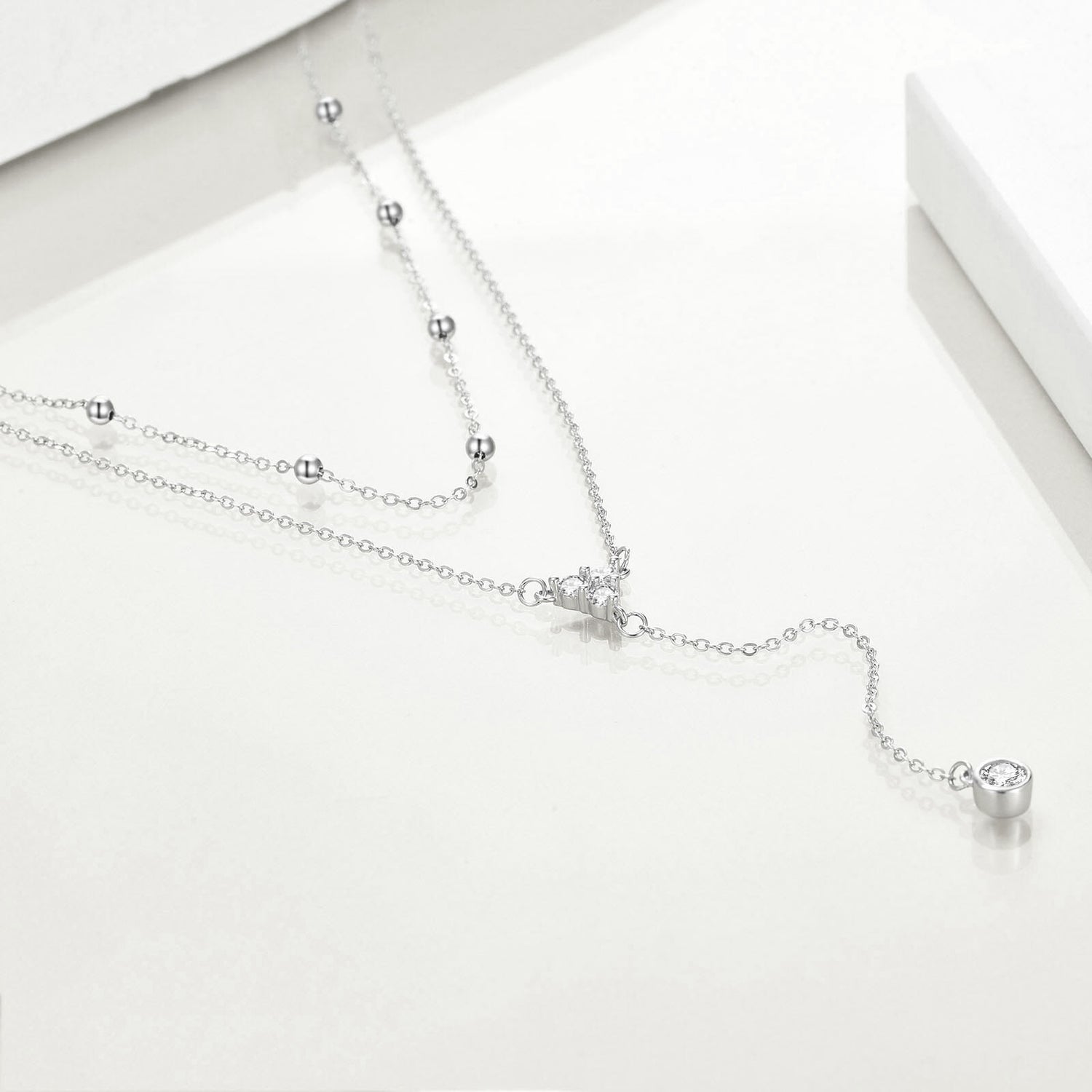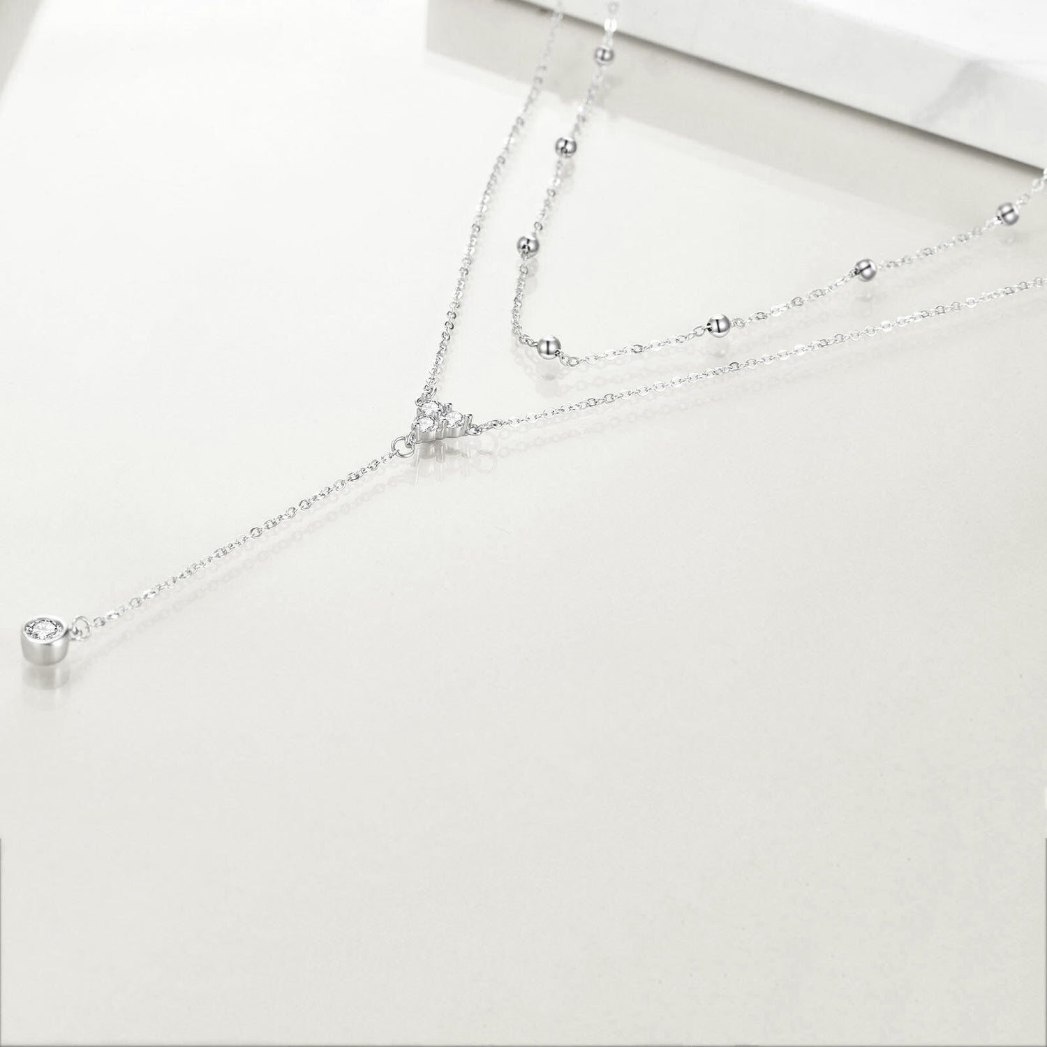 Sterling Silver Cubic Zirconia 2 Layered Y-necklace with Bead Station Chain