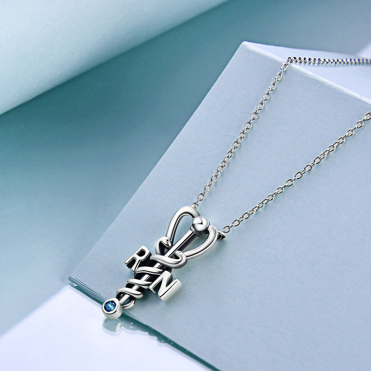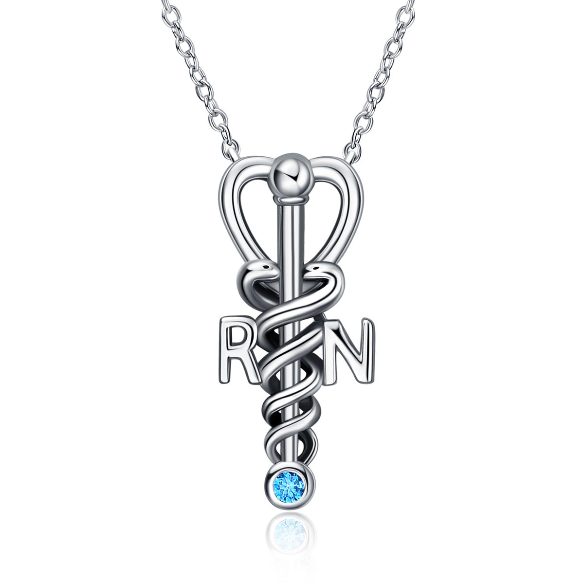 This Sterling Silver Cubic Zirconia Snake Heart Stethoscope Necklace by YFN features a unique design: a charming Snake entwined with a Heart, along with an intricately detailed Stethoscope. Enhanced with a luxurious White Gold Plating and adorned with dazzling Cubic Zirconia, this unisex piece is a stunning blend of style and symbolism, celebrating love, wisdom, and the art of healing.