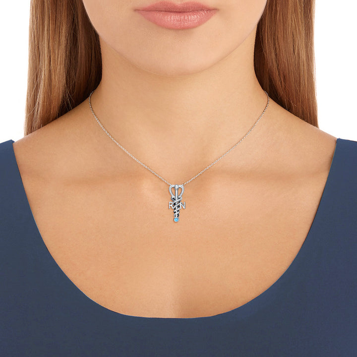Crafted from premium Sterling Silver with White Gold Plating, this unisex Pendant Necklace is adorned with dazzling Cubic Zirconia and features a Snake entwined with a Heart and a Stethoscope.