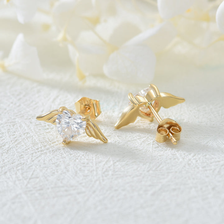 10K Gold Moissanite Angel Wing Stud Earrings