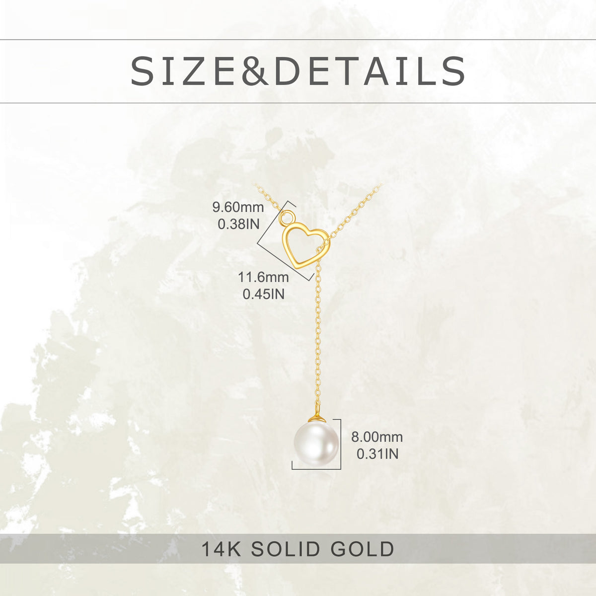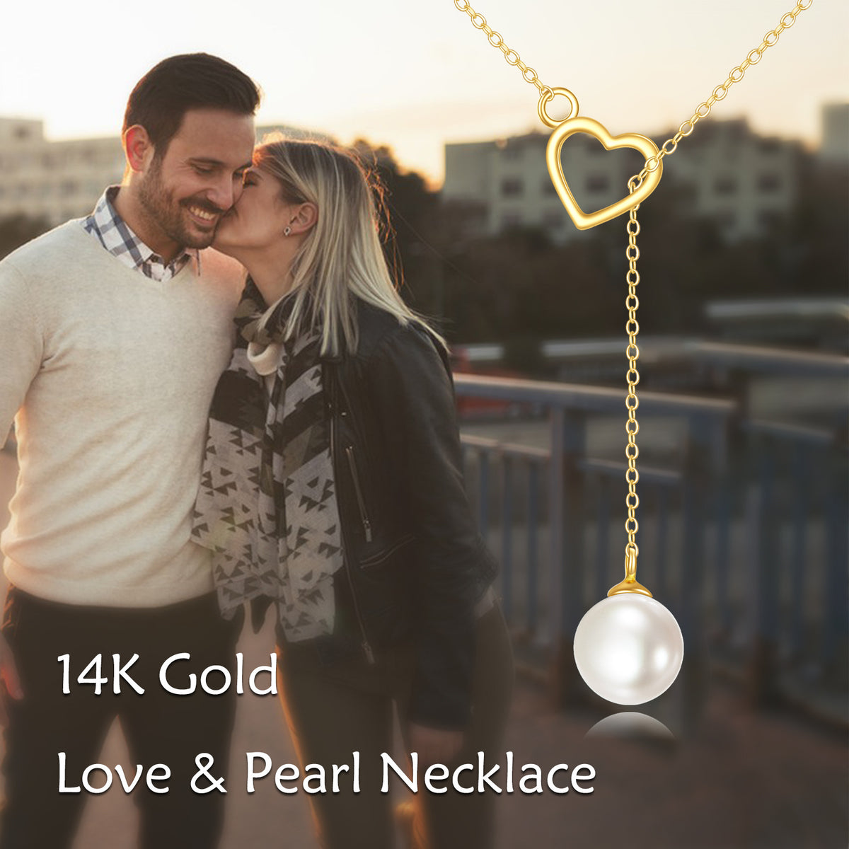 Crafted from solid 14K Gold. This is an Adjustable Y Necklace featuring a Heart charm, set with Pearls.