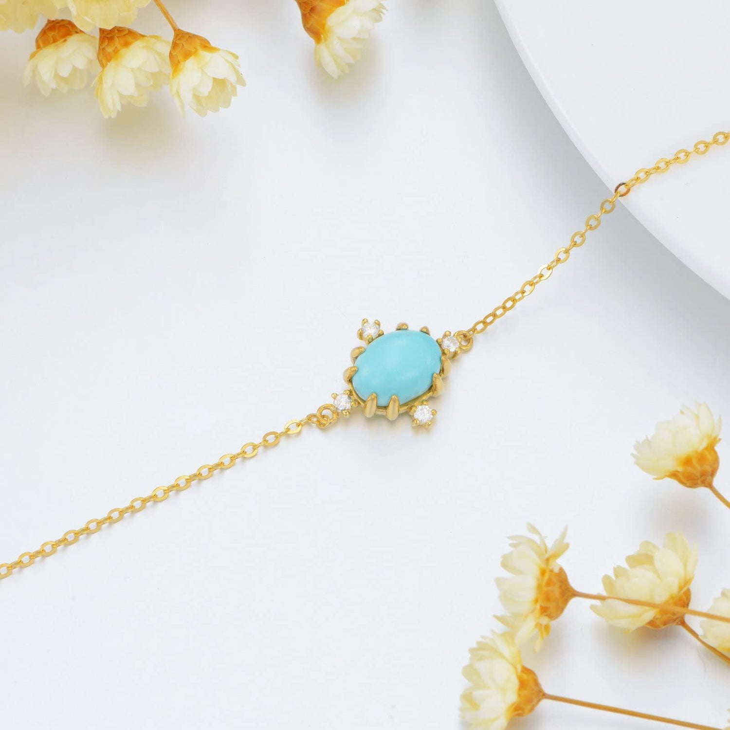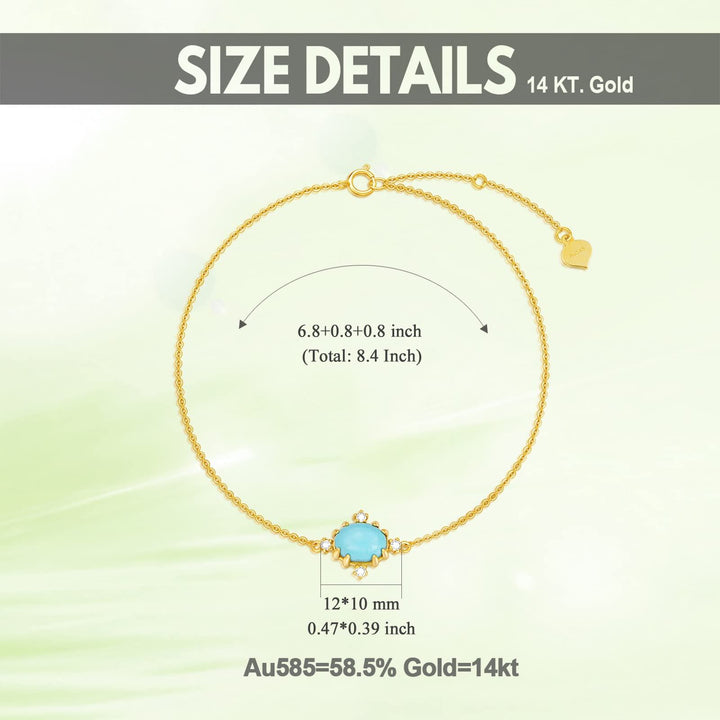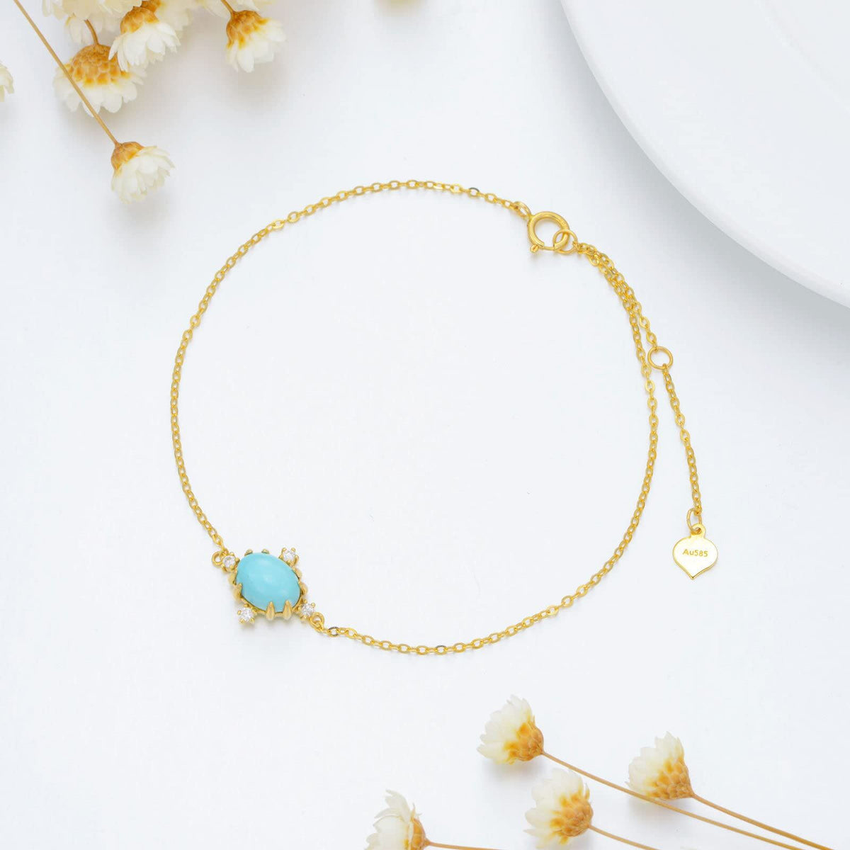 14K gold; diamond accents; turquoise stones; charm bracelet chain.