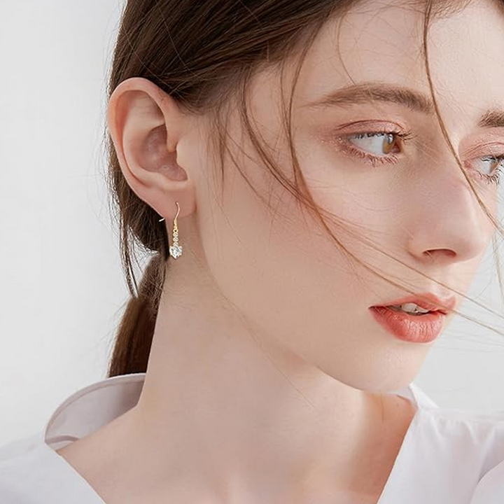 14K Gold Cubic Zirconia & Moissanite Heart Drop Earrings for Women