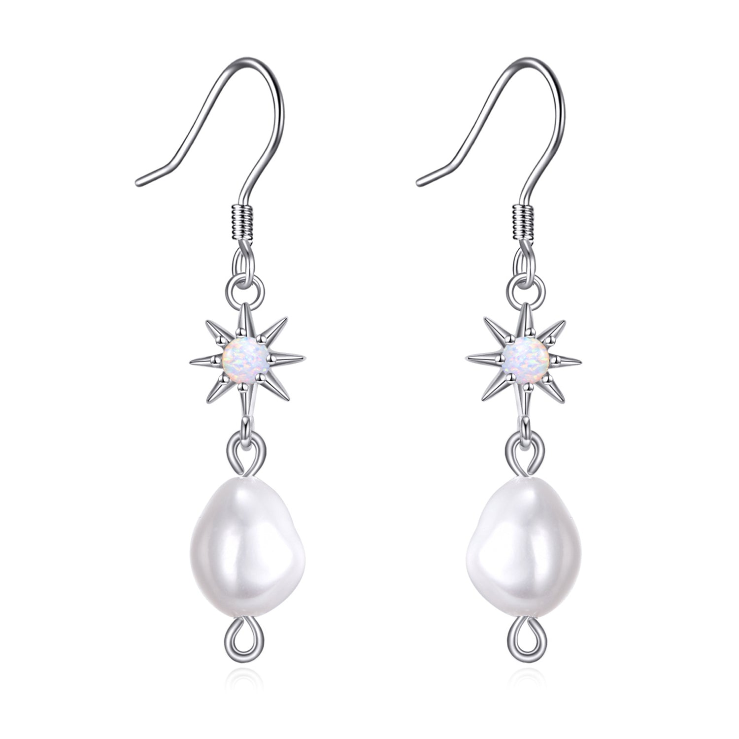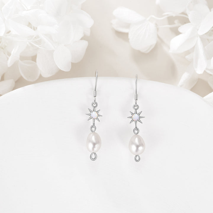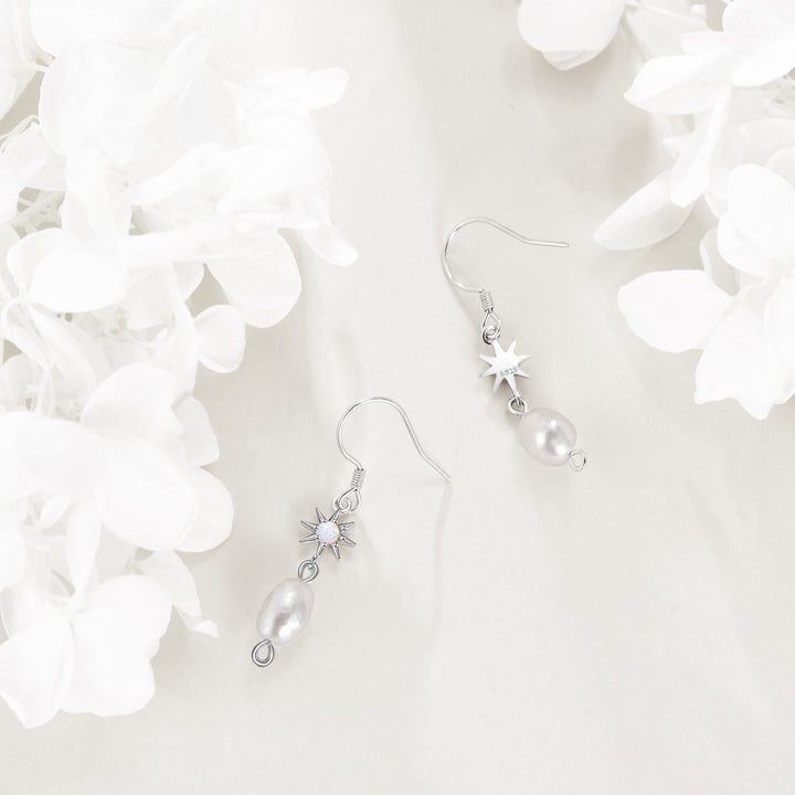 Sterling Silver Circular Shaped Opal & Pearl Star Drop Earrings