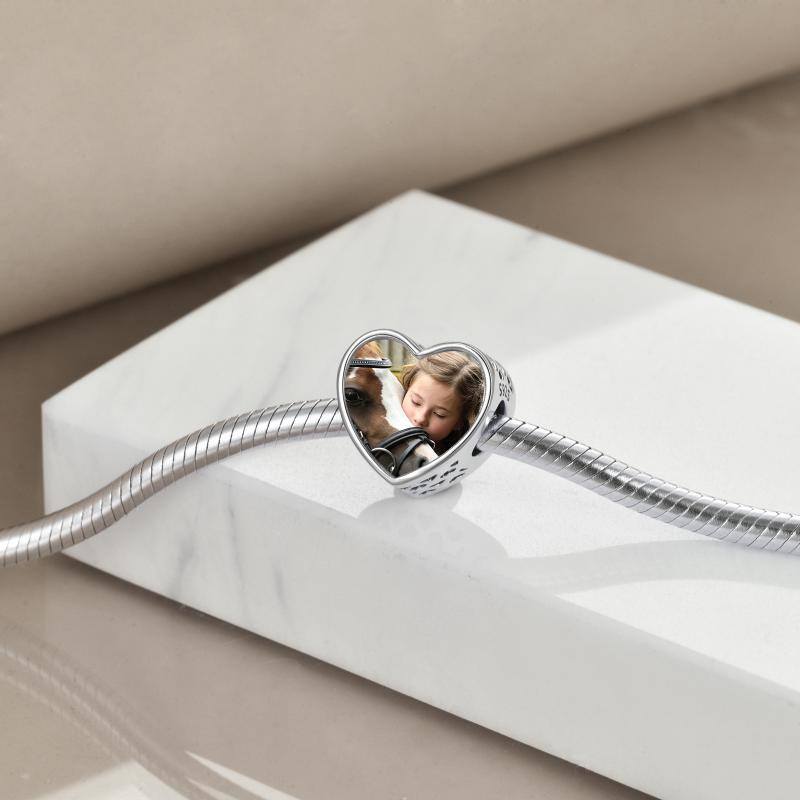 Sterling Silver Two-tone Horse Heart Personalized Photo Bead Charm