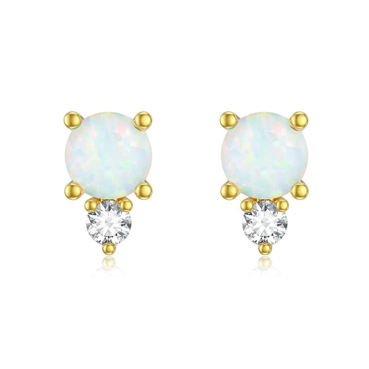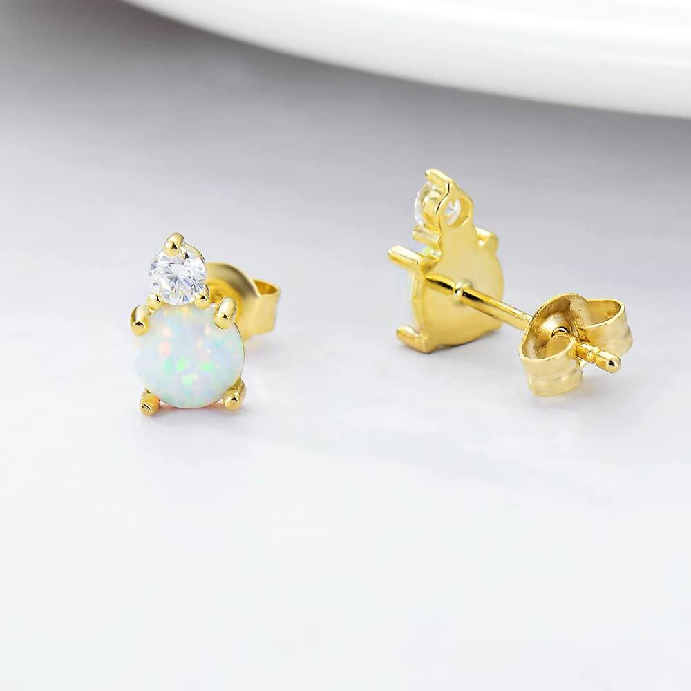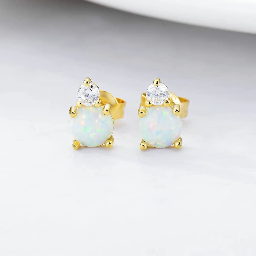 14K Gold Opal With Moissanite Couple & Grandmother Stud Earrings