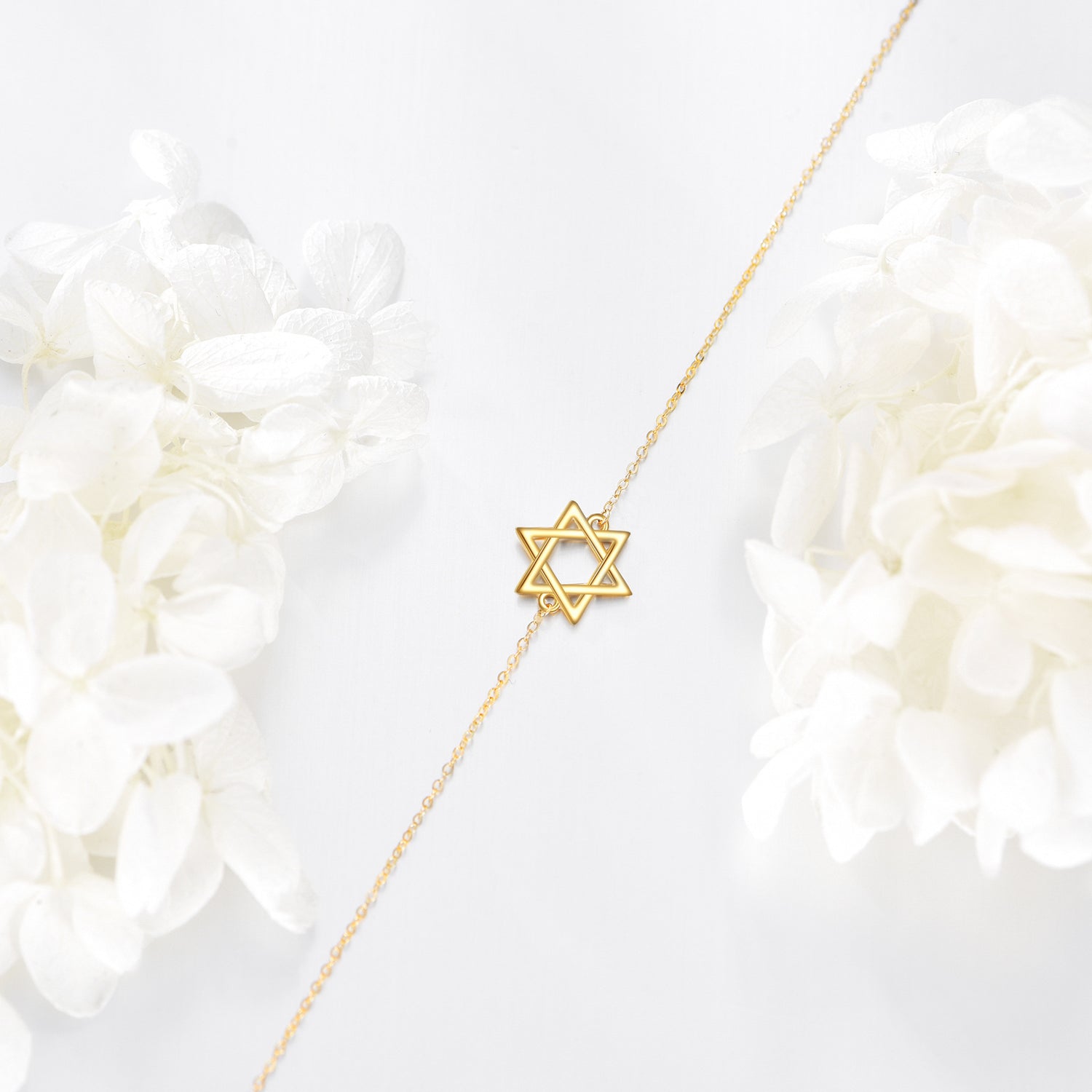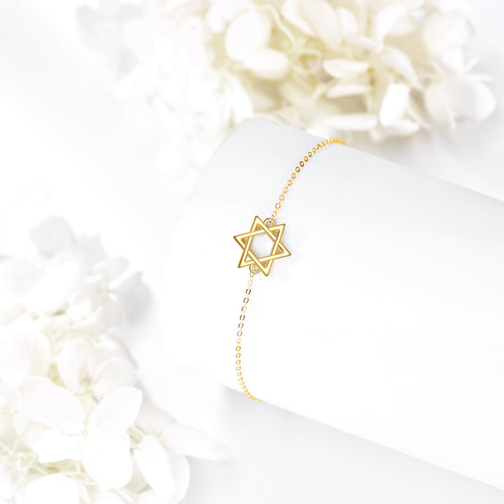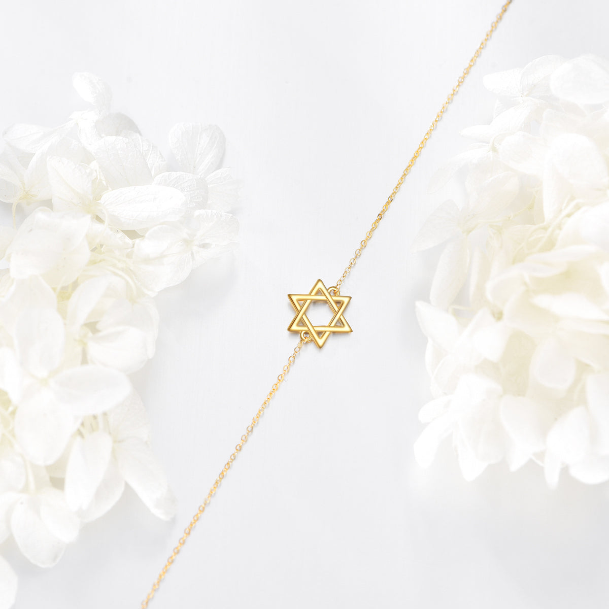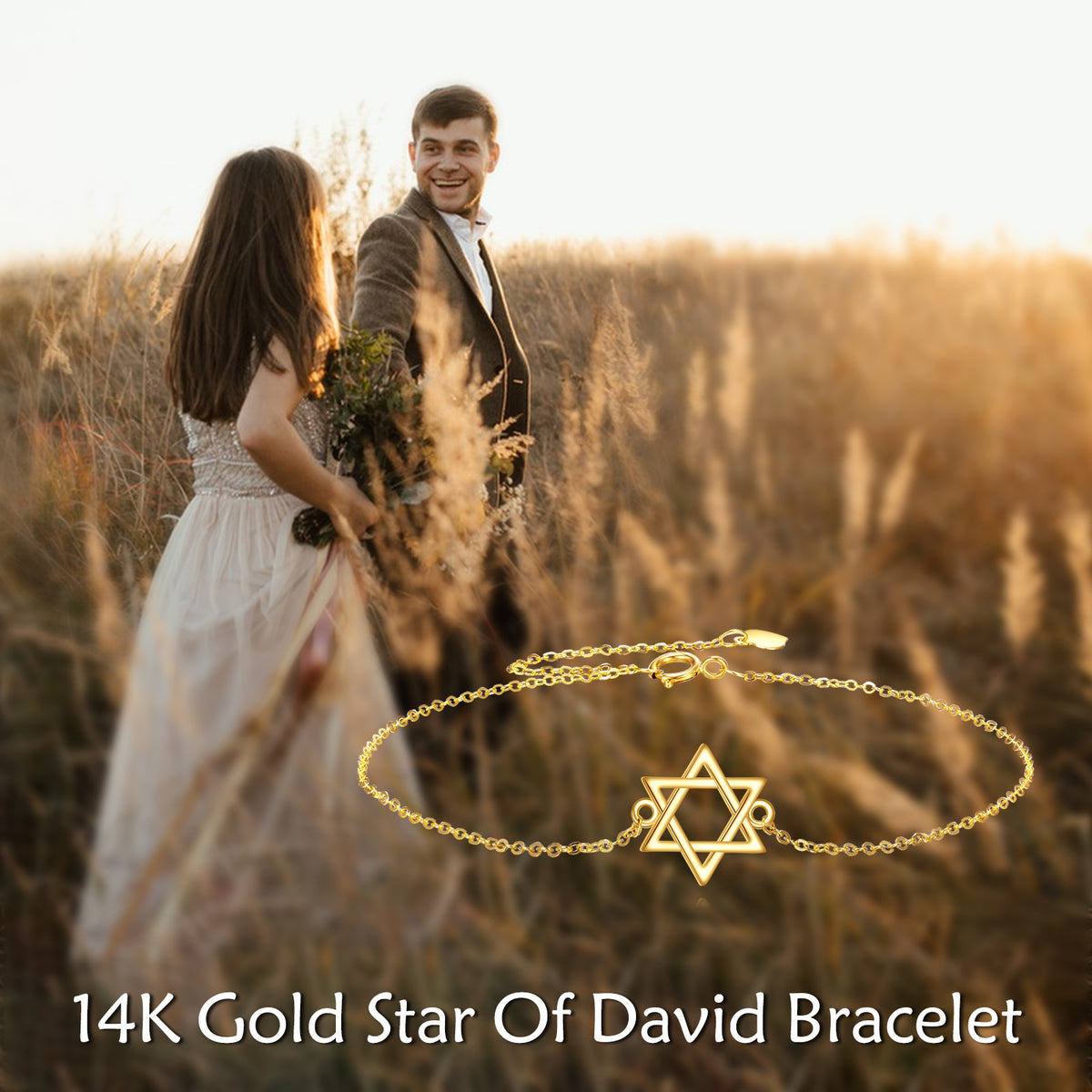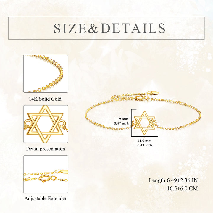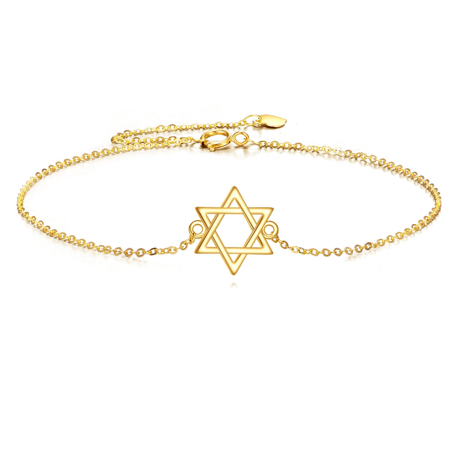 This 14K Gold Star Of David Charm Bracelet by YFN symbolizes protection and heritage for women. Crafted from high-quality 14K gold, this stunning charm bracelet features the timeless Star of David, making it a perfect addition for everyday wear or special occasions.