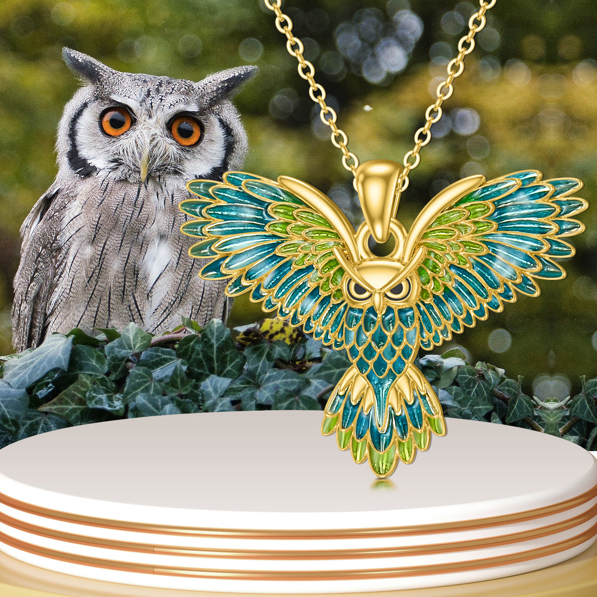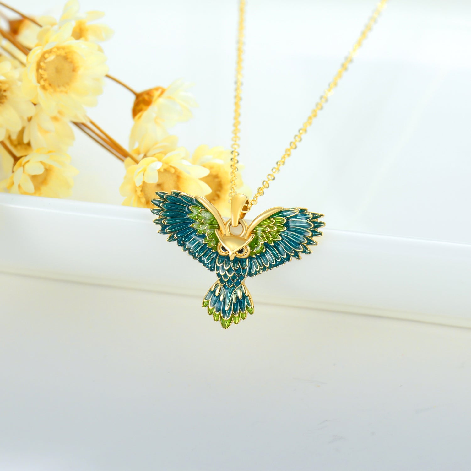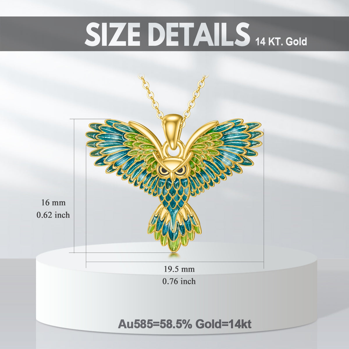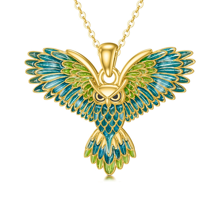 14K Gold Flying Owl Pendant Necklace
