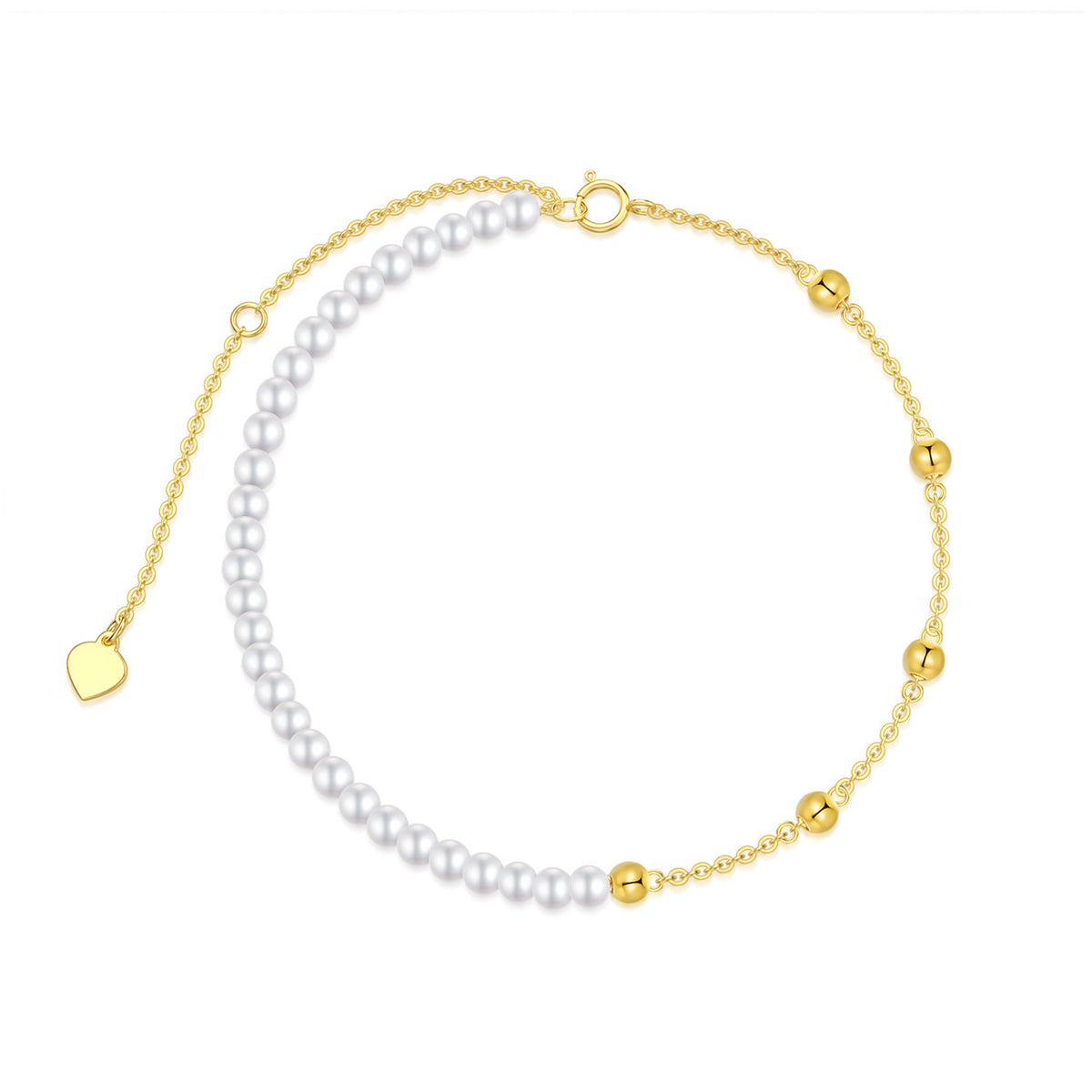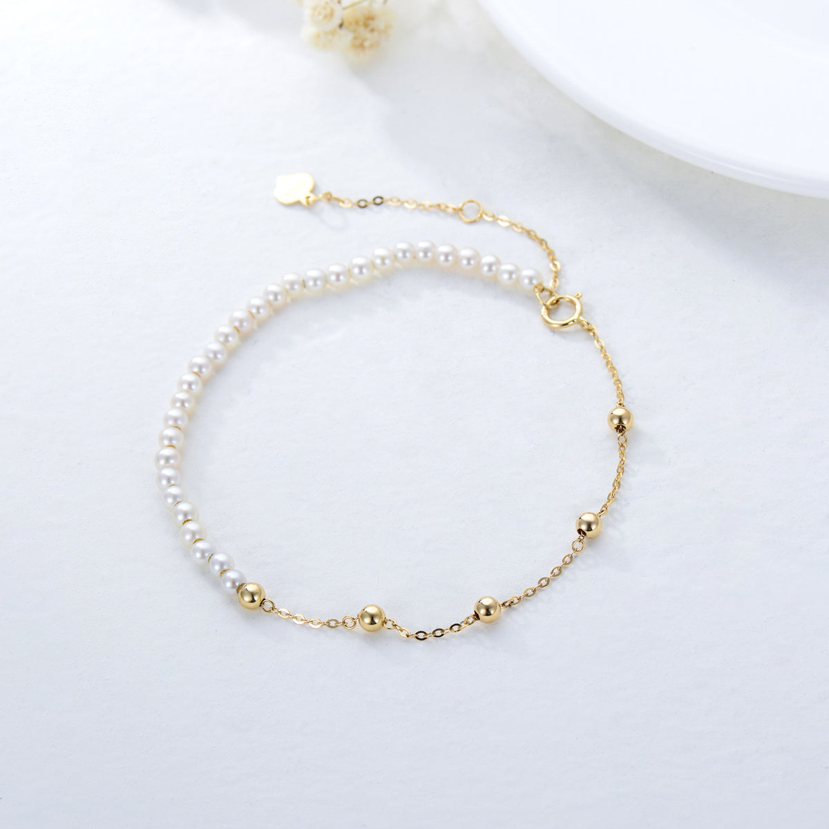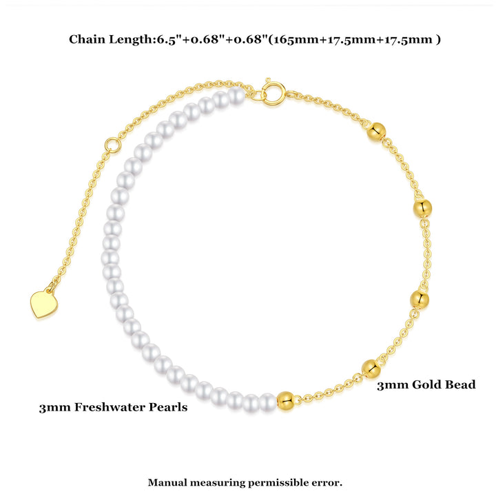 14K Gold Pearl Bead Bead Station Chain Bracelet For Women