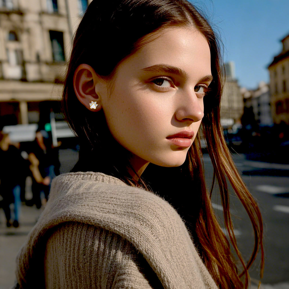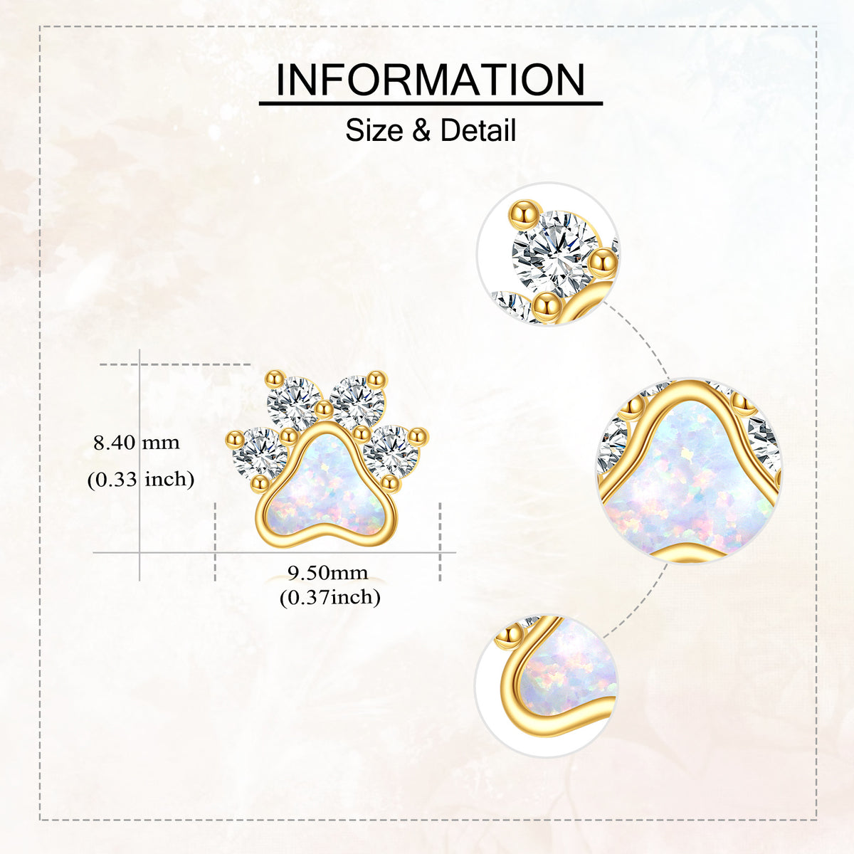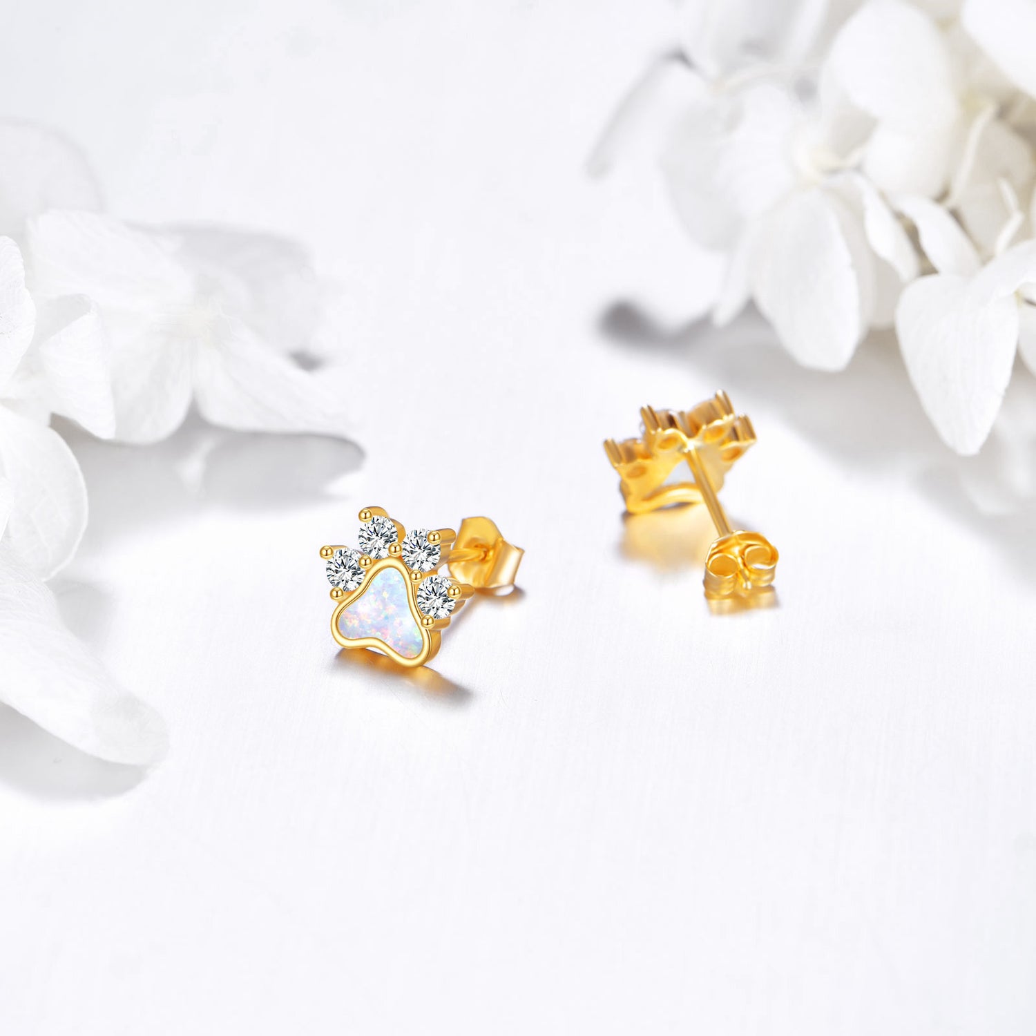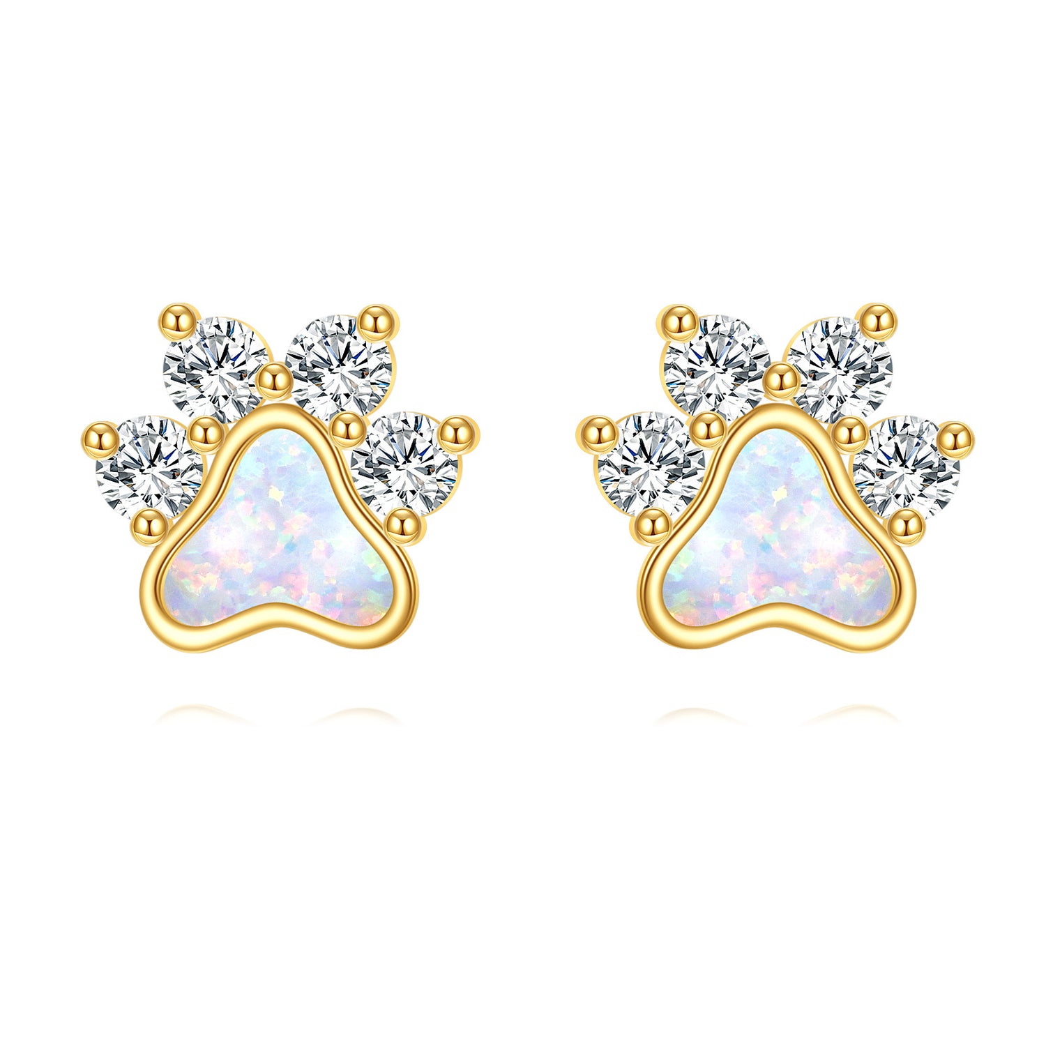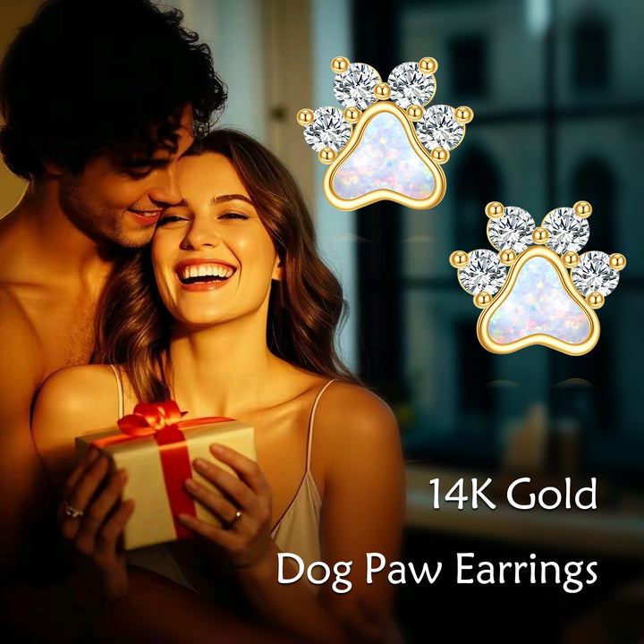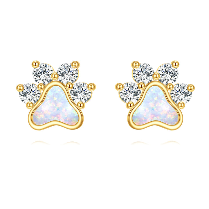 14K Gold Cubic Zirconia Opal Paw Stud Earrings for Women