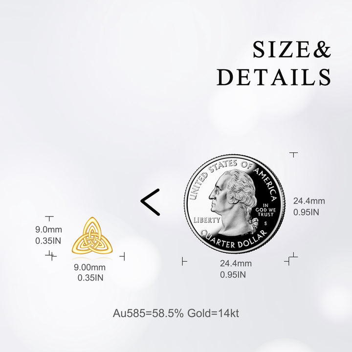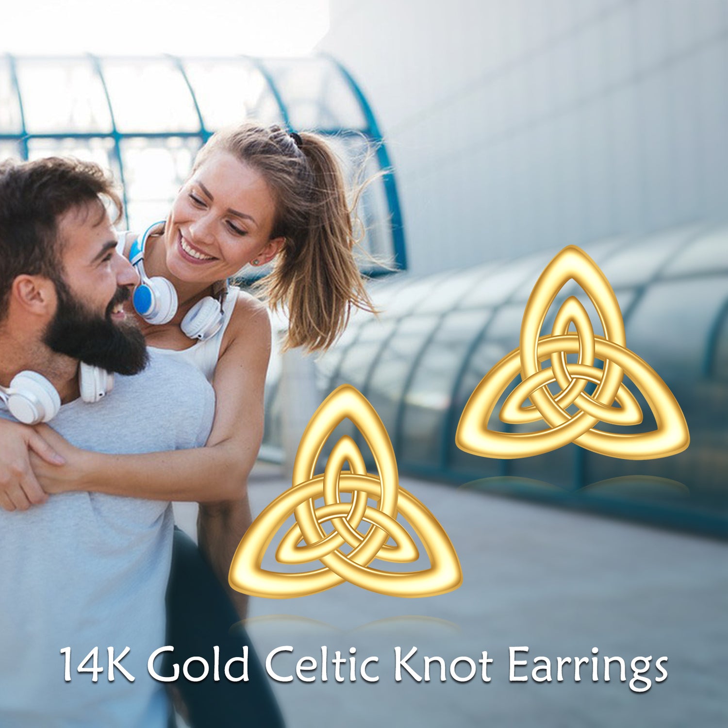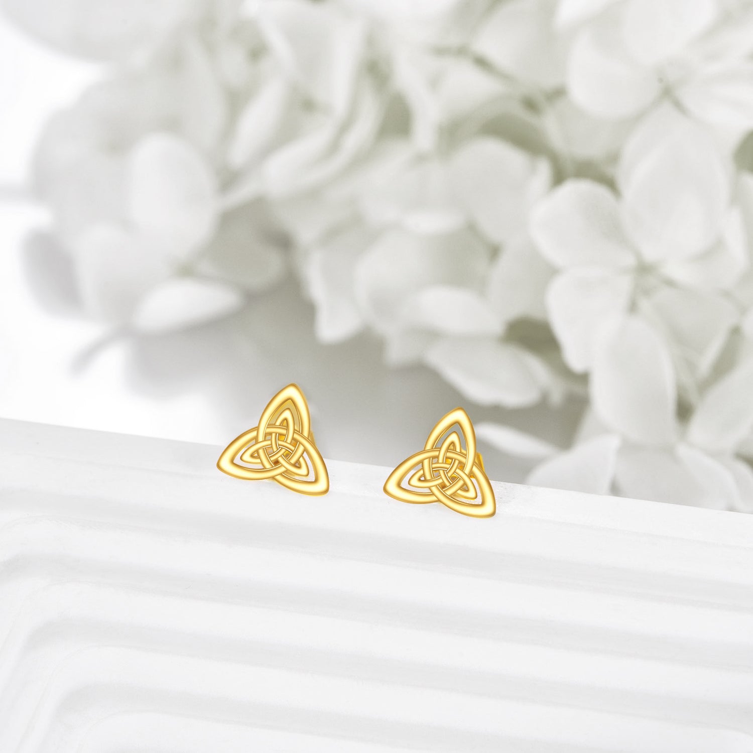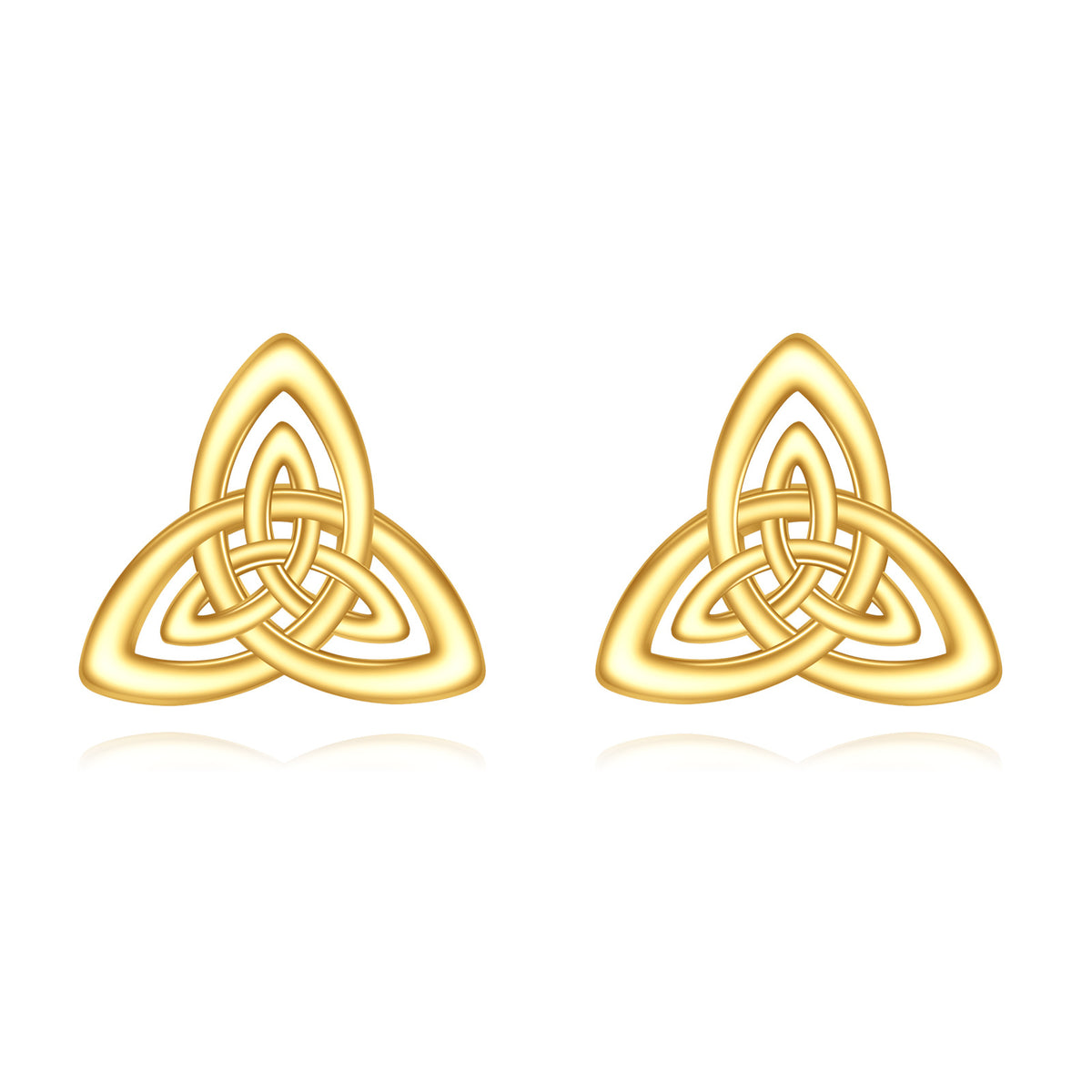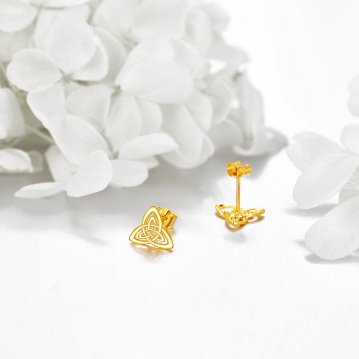14K Yellow Gold Hollow Triangle Celtic Knot Stud Earrings