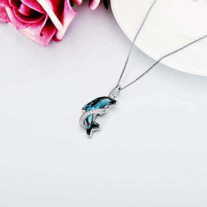 Sterling Silver Lake Blue Crystal Dolphin Pendant Necklace