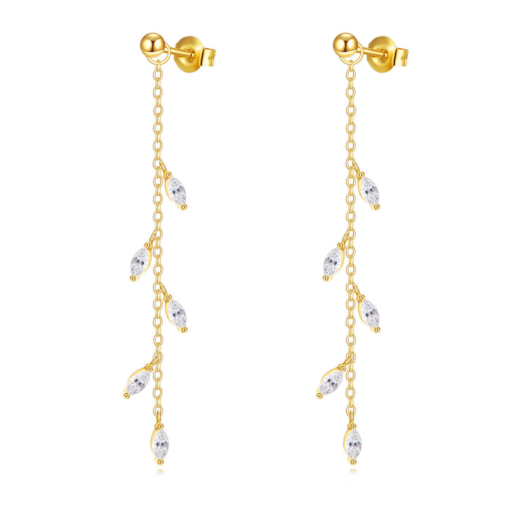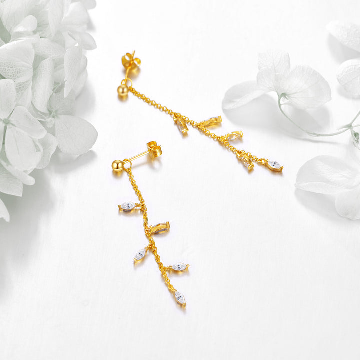14K Gold Cubic Zirconia Leaves Drop Earrings