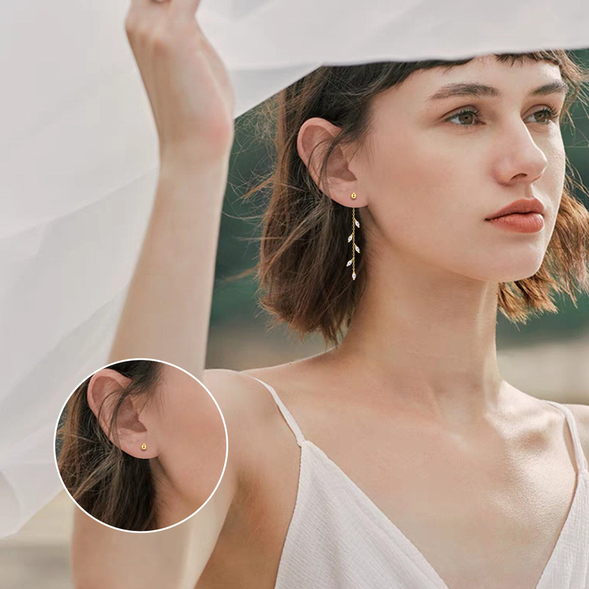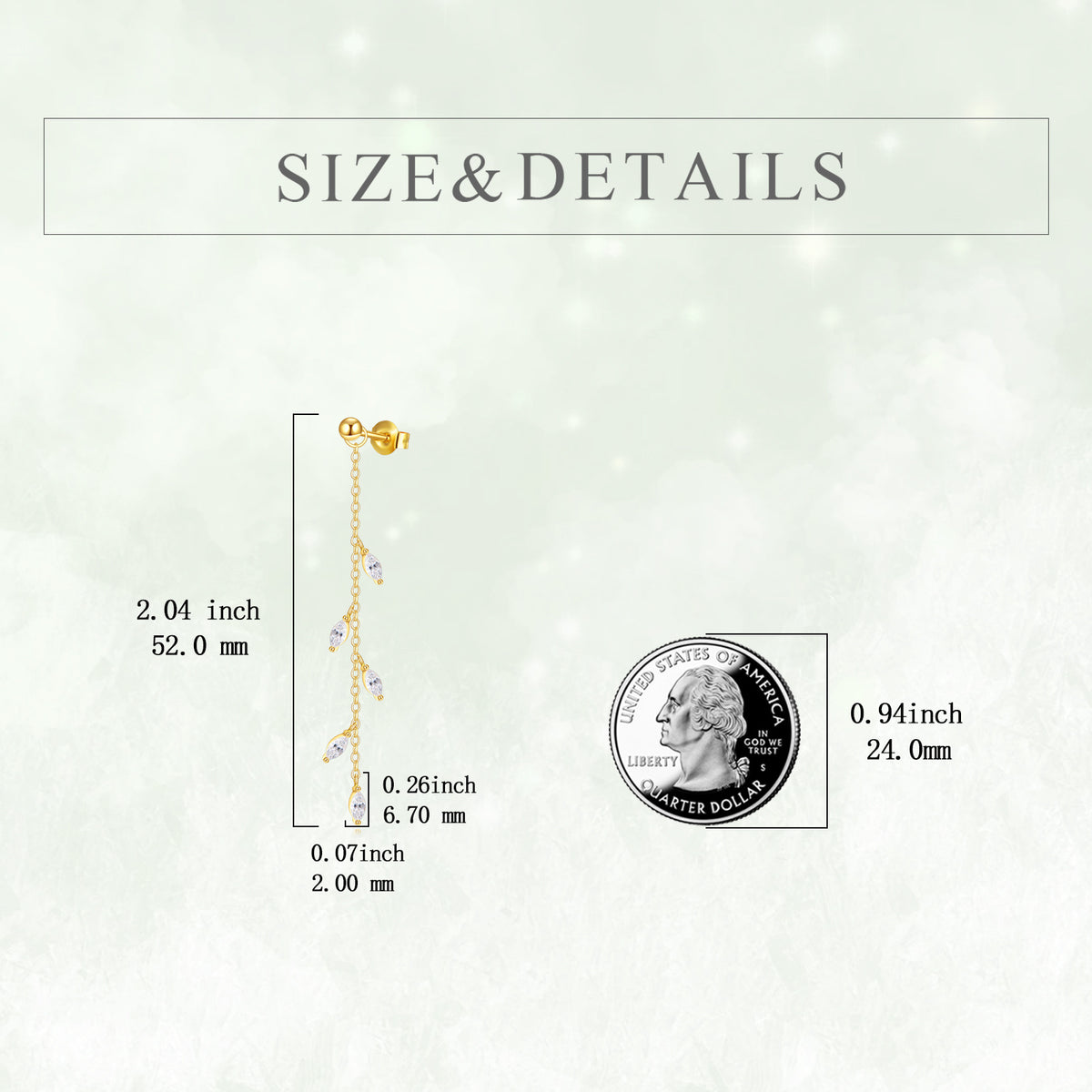 This 14K Gold Cubic Zirconia Leaves Drop Earrings by YFN highlight natural elegance with their cascading leaf motifs accented by shimmering zircon stones. Lightweight and graceful, they add a touch of organic glamour to any ensemble.