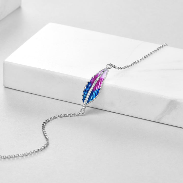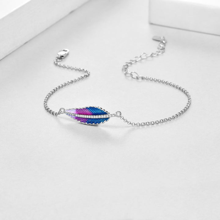 Sterling Silver Circular Shaped Cubic Zirconia Feather Charm Bracelet