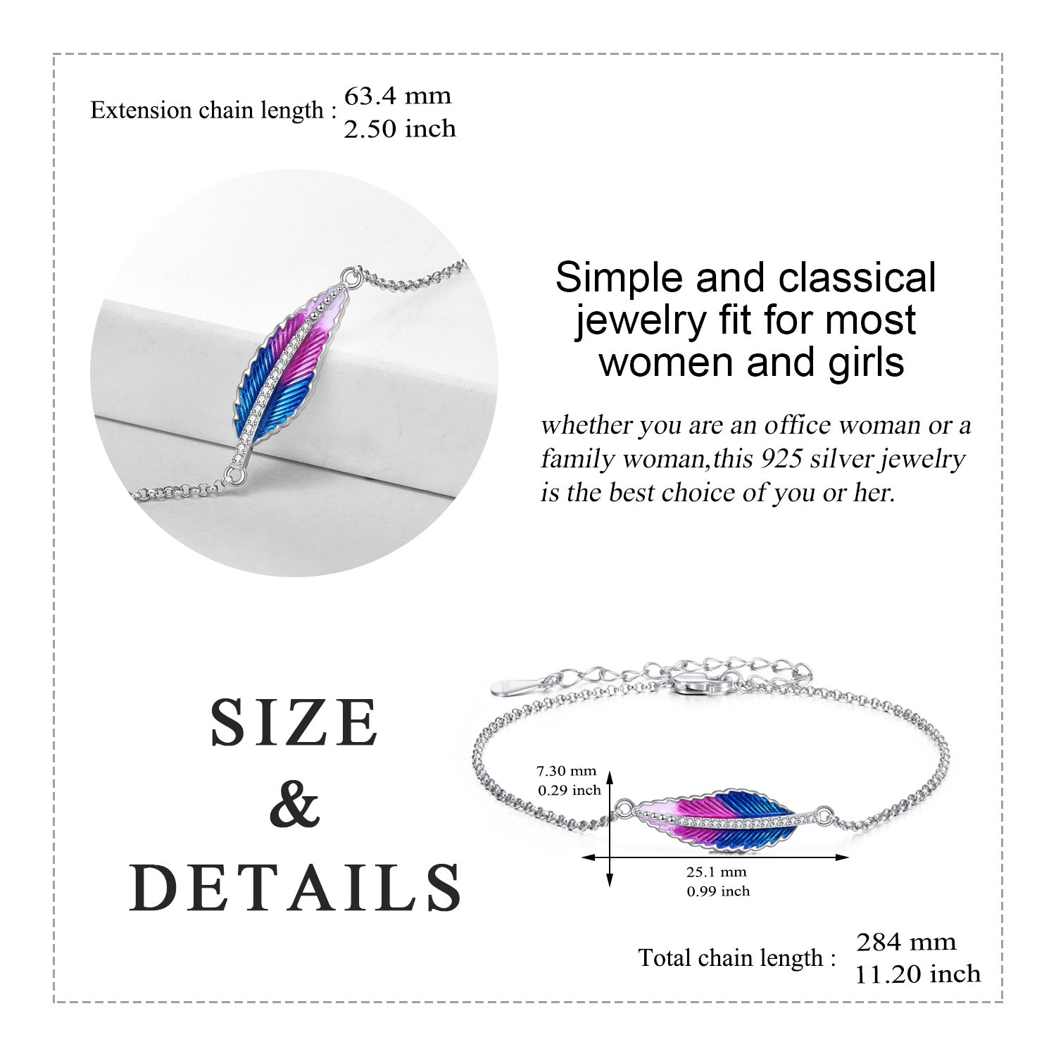 This Sterling Silver Circular Shaped Cubic Zirconia Feather Charm Bracelet by YFN captures the essence of lightness, elegance, and graceful movement. The circular charm shines with clear cubic zirconia, offering a refined sparkle that complements the bracelet’s polished silhouette. A delicately sculpted feather adds symbolic meaning, representing freedom, guidance, and spiritual upliftment. Enhanced with white gold plating, the bracelet has a radiant finish that elevates everyday style while remaining sophisticated enough for special occasions. Designed for women who appreciate jewelry that balances beauty and symbolism, this piece blends timeless craftsmanship with an airy, modern charm.