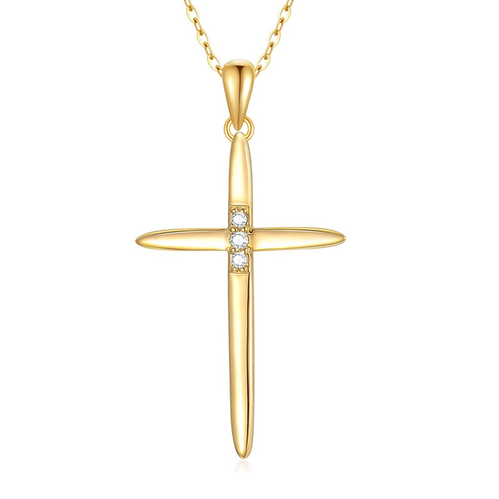 Gold Vermeil Cubic Zirconia Cross Necklace for Women Men