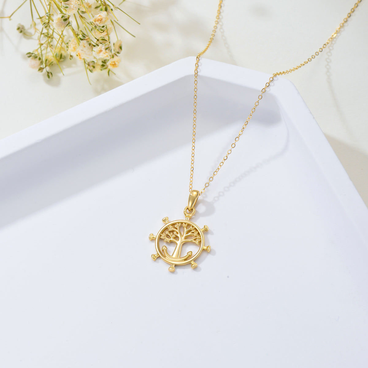 This no-stone Women's Pendant Necklace is Crafted from Luxurious 14K Gold, Featuring a Meticulously Detailed Tree of Life Pendant.