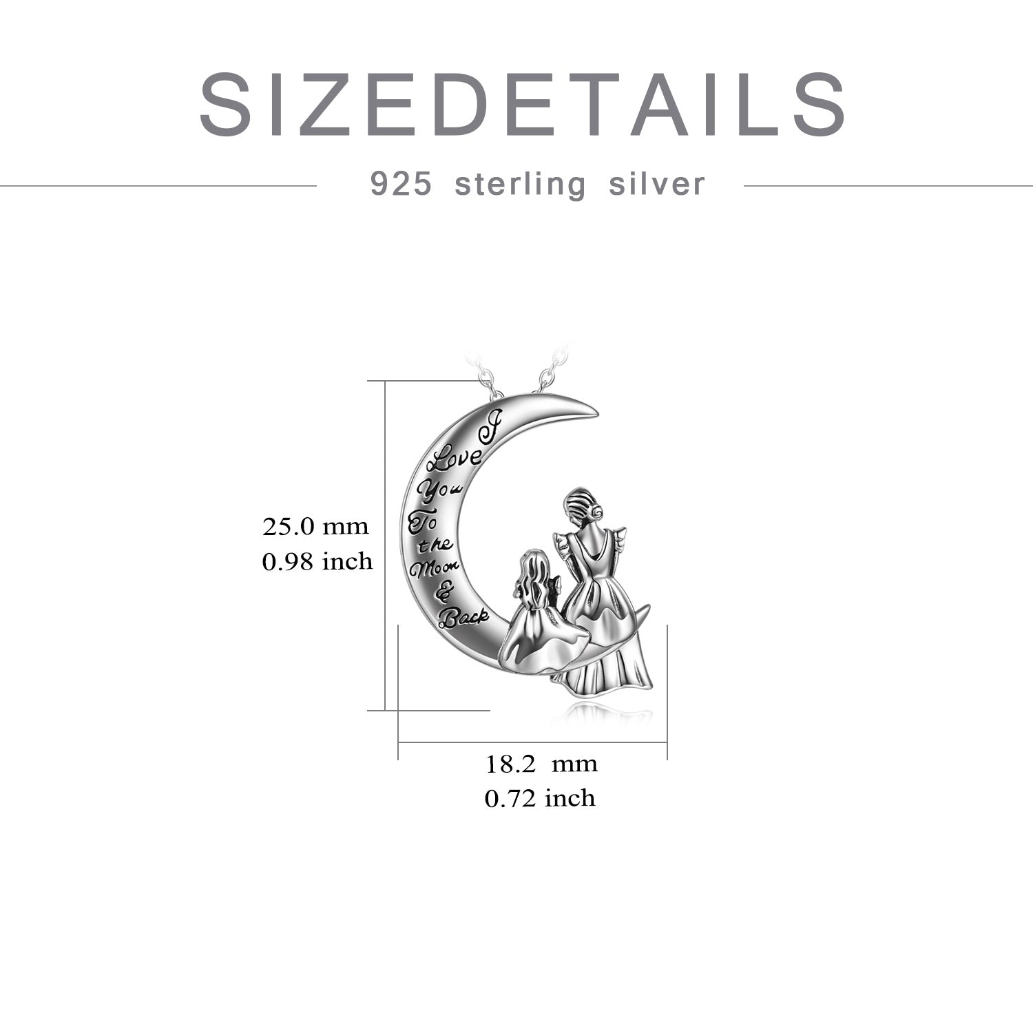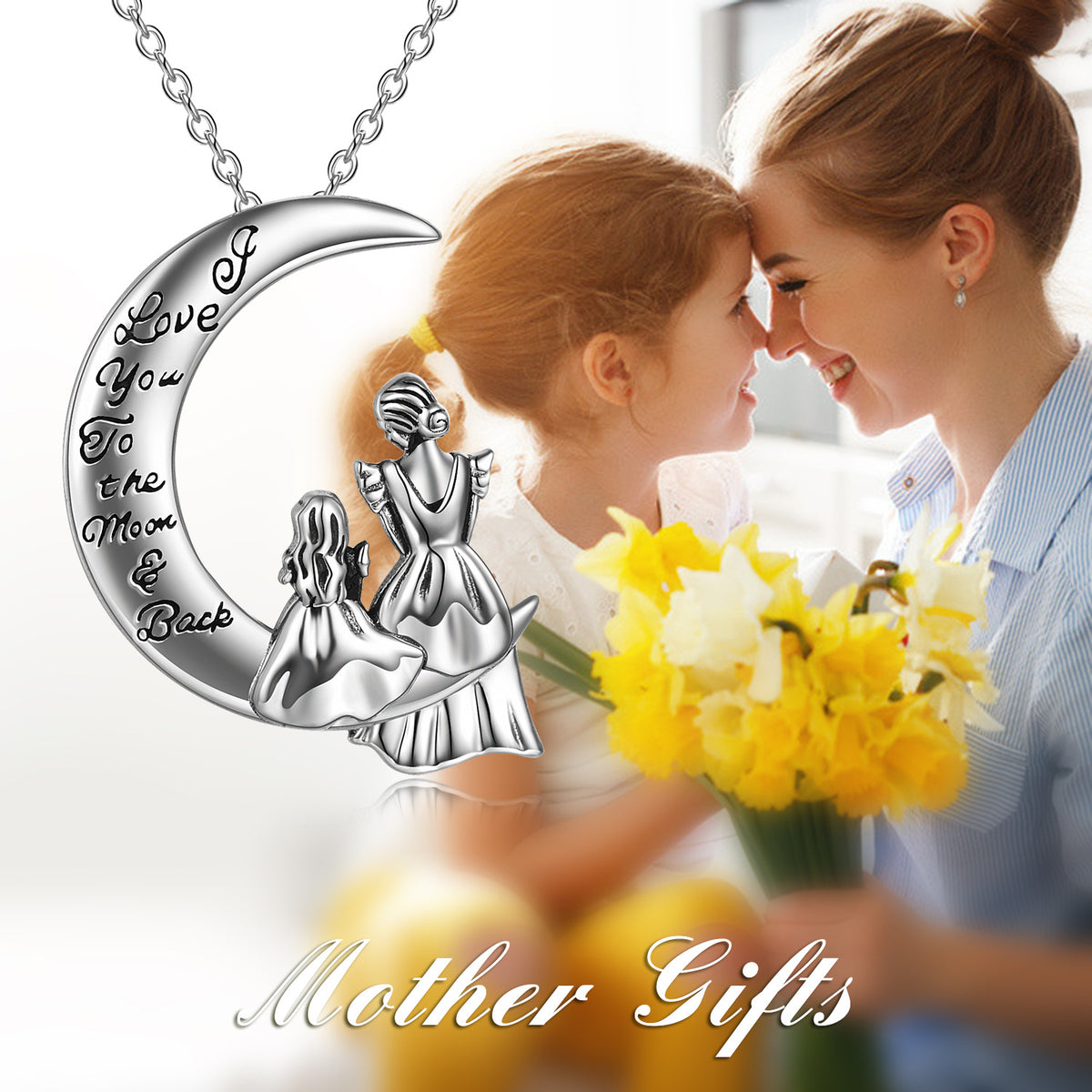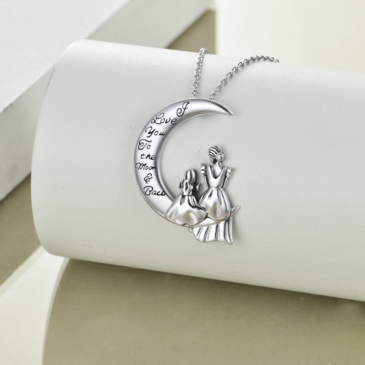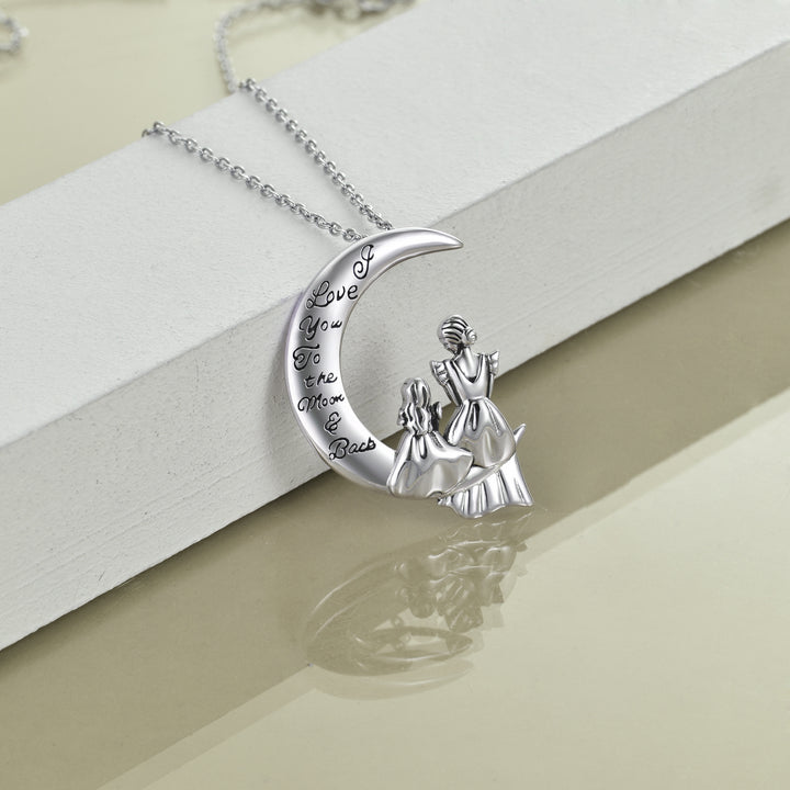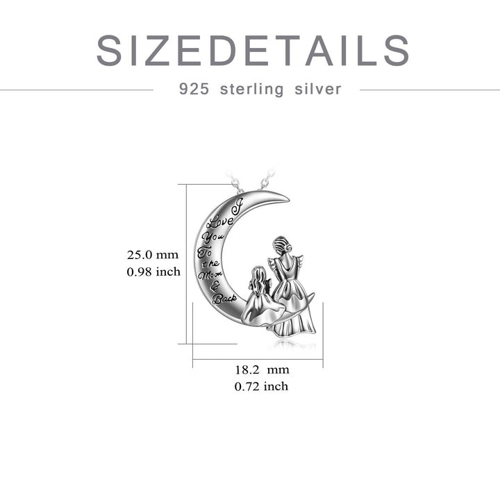 Sterling Silver Mother & Daughter Moon Pendant Necklace with Engraved Word