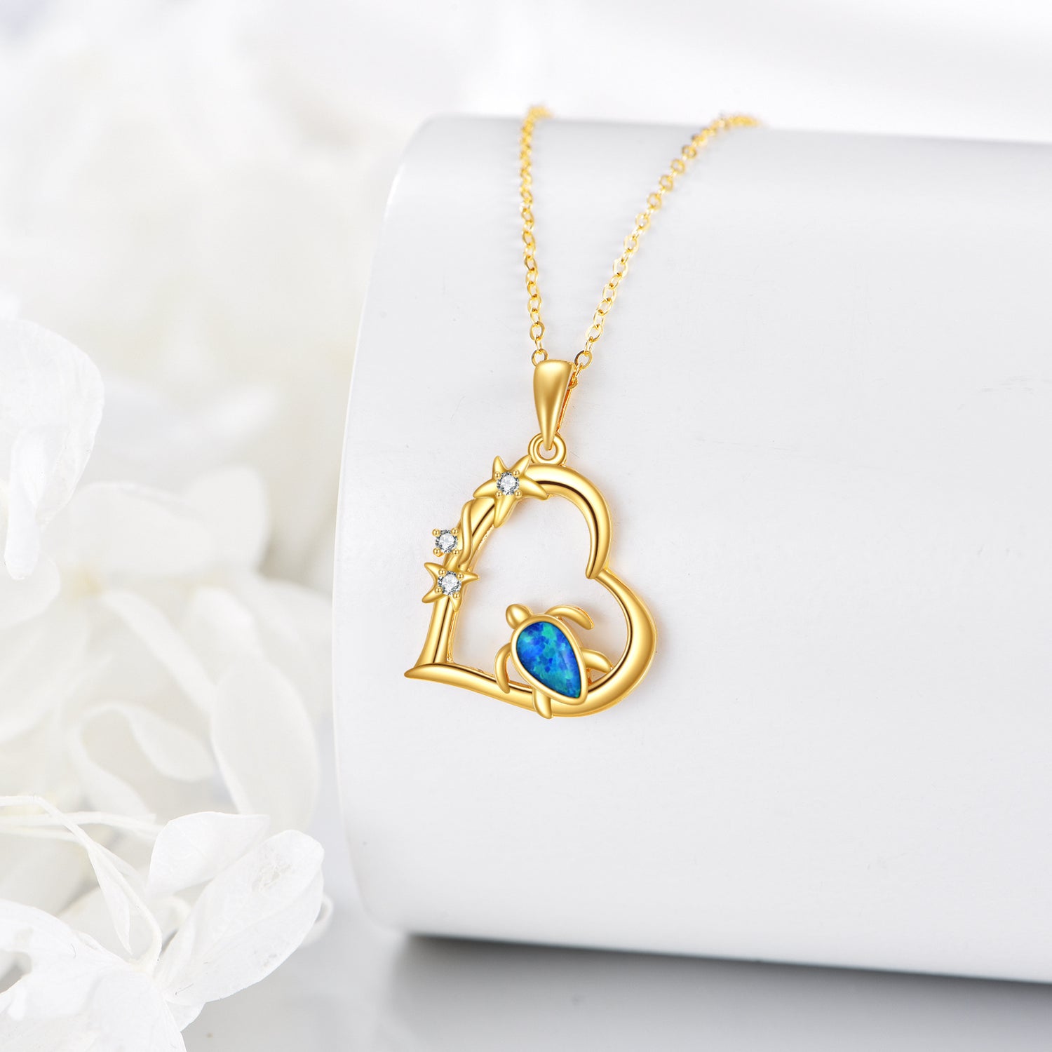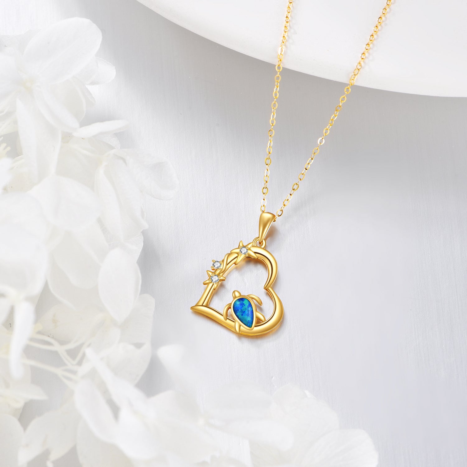 14K Yellow Gold Pear Cubic Zirconia With Opal Sea Turtle Heart Pendant Necklace For Women