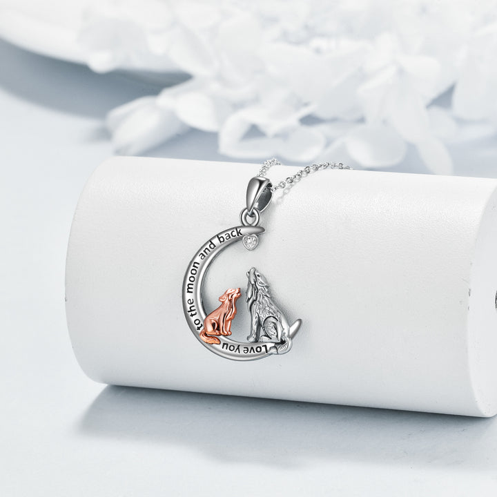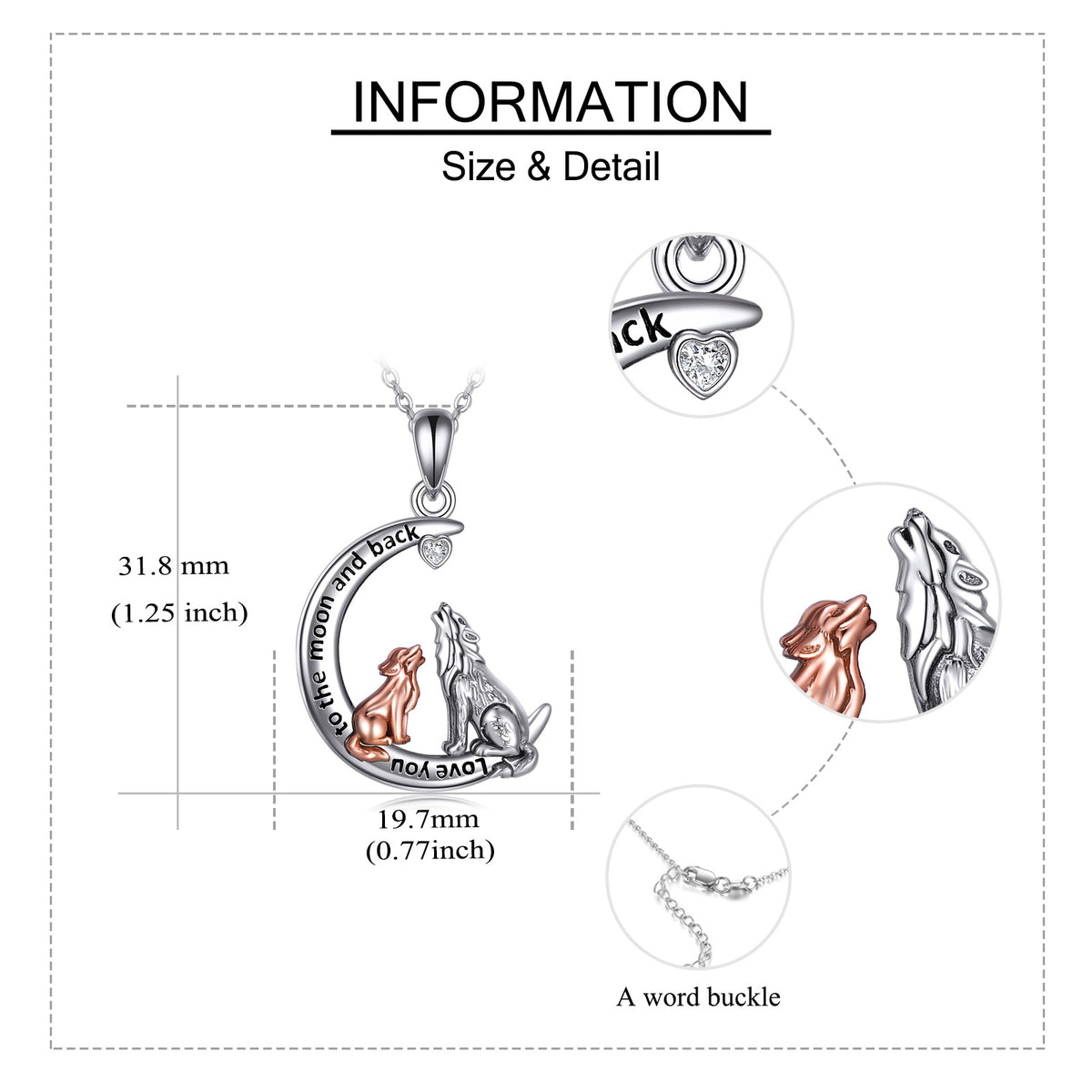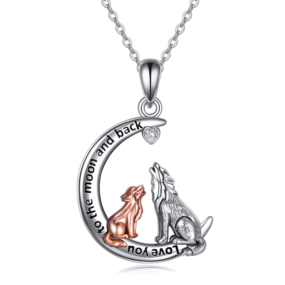 This Sterling Silver Two-tone Cubic Zirconia Wolf & Moon Pendant Necklace by YFN is an exquisite necklace for women, bringing an aura of mystery and luxury. Brilliantly adorned with clear Cubic zirconia, the detailed wolf and moon motif is highlighted with a striking combination of silver oxide and Rose gold (Two-tone). This piece is a perfect, sophisticated accessory for any occasion.