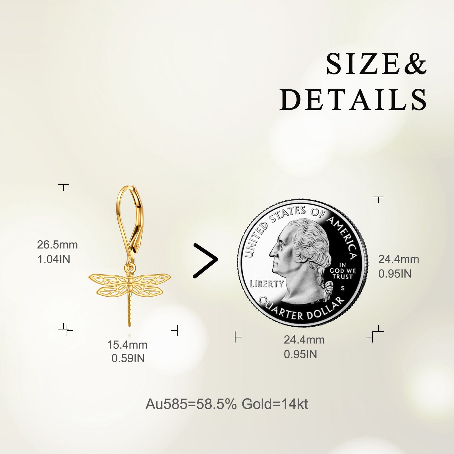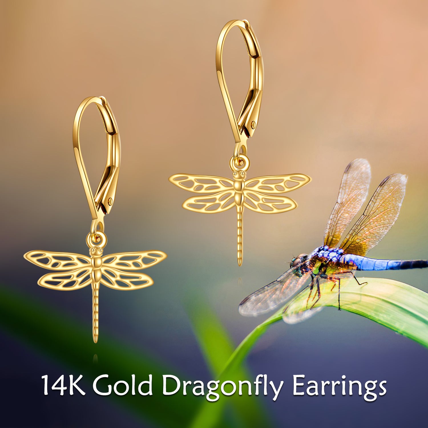 14K Gold Dragonfly Drop Earrings