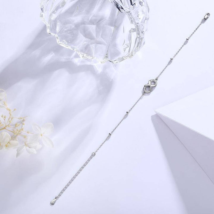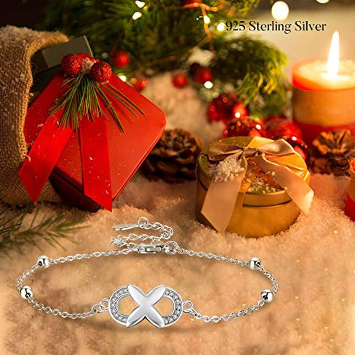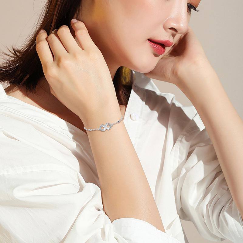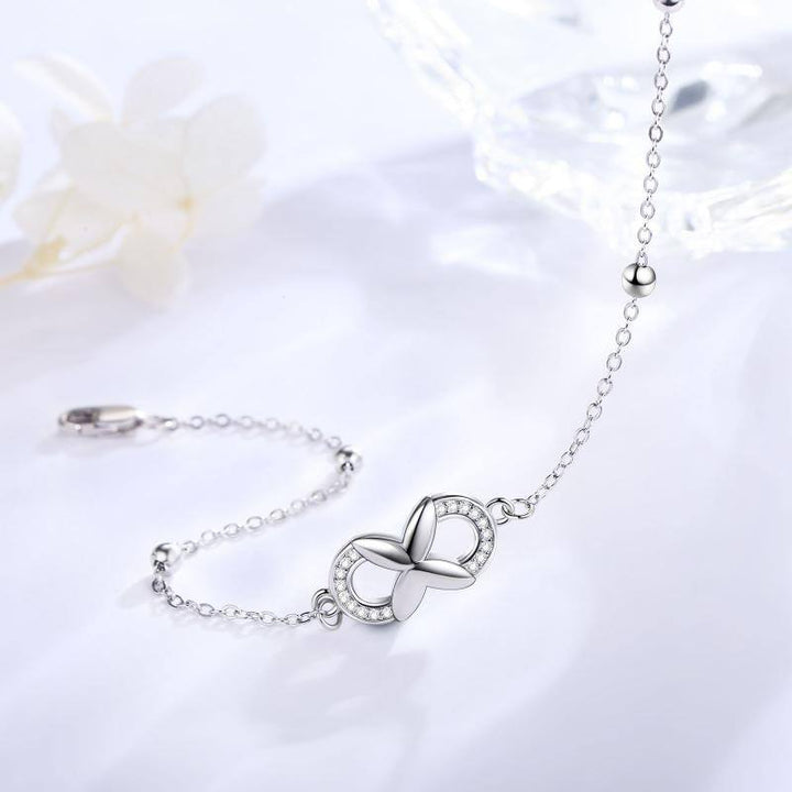 Sterling Silver Cubic Zirconia Butterfly & Infinity Symbol Charm Bracelet