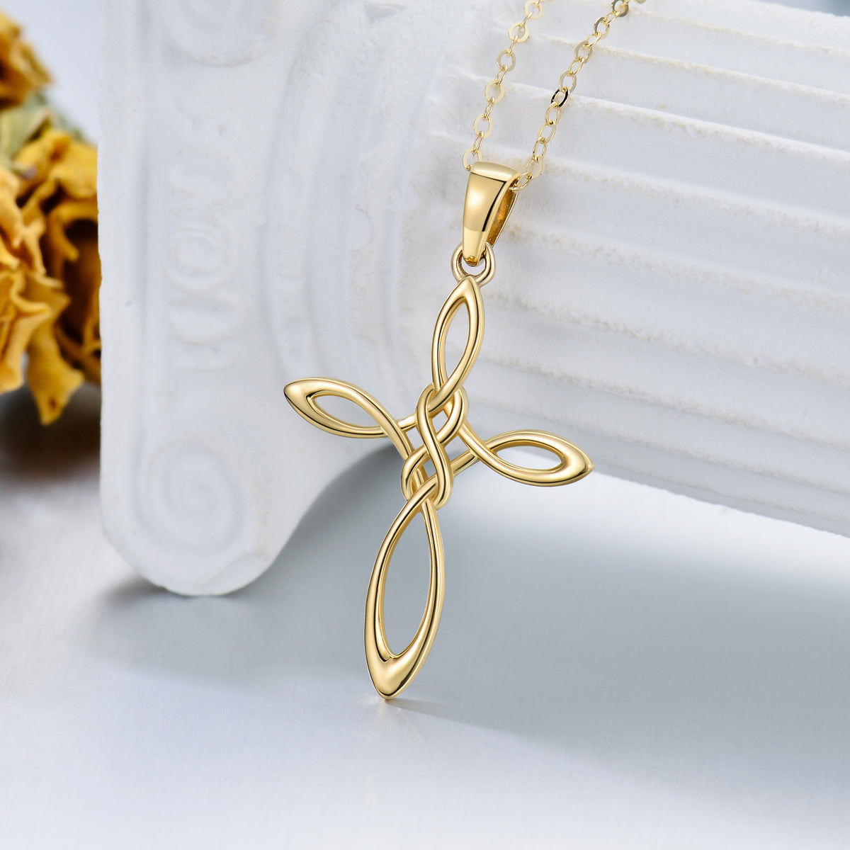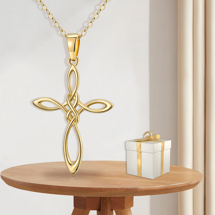 14K Gold Celtic Knot & Cross Pendant Necklace