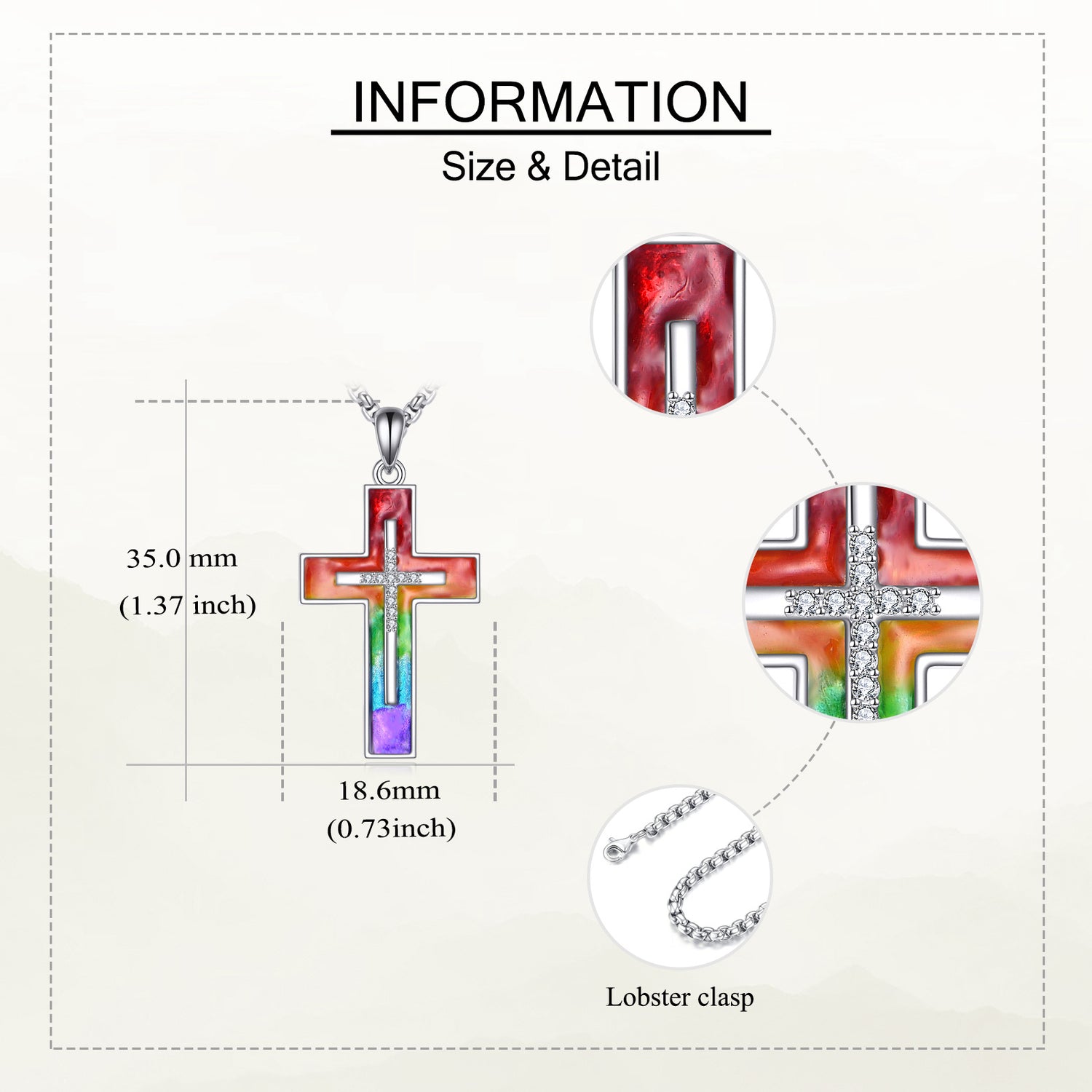 This Cubic Zirconia Cross & Rainbow Pendant Necklace by YFN is a stunning, unisex accessory. Crafted from sterling silver and elegantly white gold plated, the intricate cross design symbolizes faith and hope. It is adorned with dazzling cubic zirconia and vibrant rainbow elements, making it a unique, tarnish-resistant piece that complements any style.