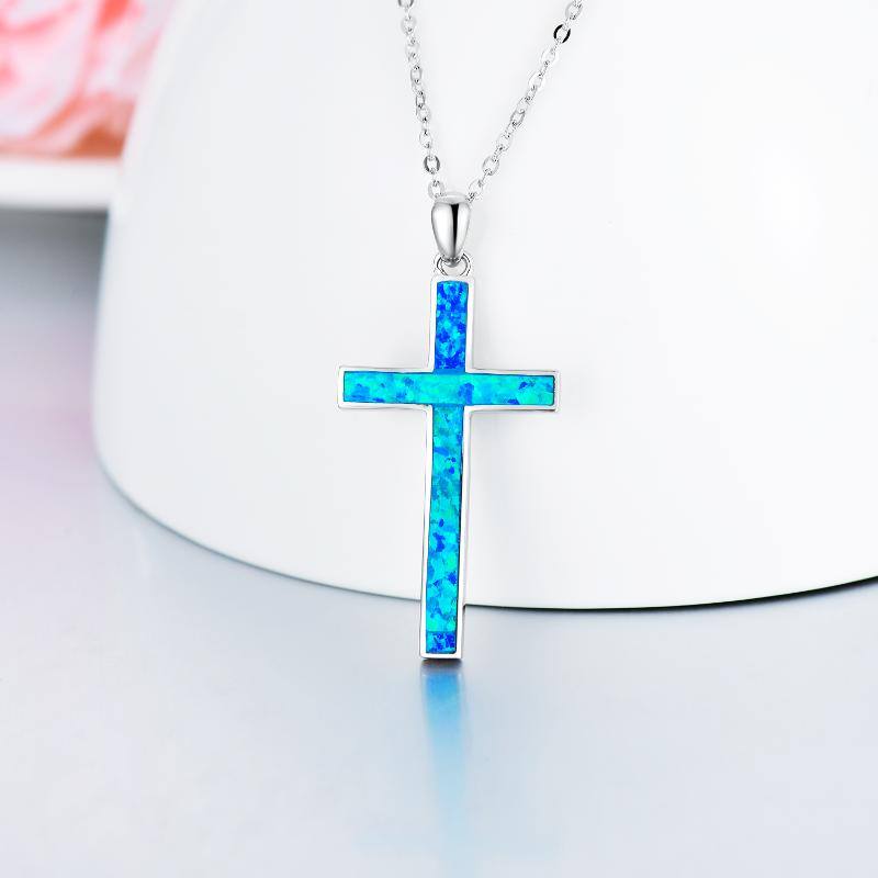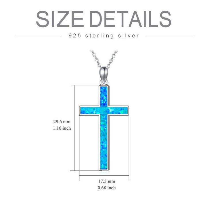This Sterling Silver Opal Cross Pendant Necklace by YFN offers a beautiful fusion of spirituality and sophistication for women who value meaningful jewelry. The iridescent opal centerpiece radiates serene, captivating hues that symbolize hope, purity, and spiritual clarity, while the graceful cross silhouette reflects devotion and faith. White gold plating enhances the sterling silver base with added luminosity and lasting durability, creating a polished finish suitable for any occasion. Elegant, heartfelt, and timeless, this pendant brings a refined touch of symbolism to both everyday and special-event wear.