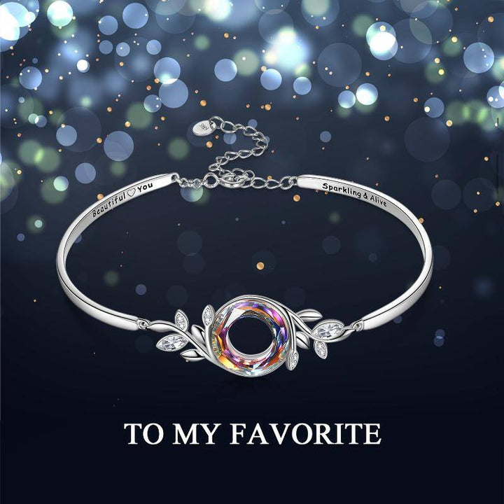 This Sterling Silver Crystal Leaves Pendant Bangle Bracelet by YFN is a white gold-plated masterpiece designed for women seeking timeless sophistication. Crafted from luxurious sterling silver, this pendant bangle bracelet features an elegant leaves design, an ode to nature's beauty, adorned with dazzling crystals. It offers a versatile, modern yet timeless appeal, effortlessly elevating everyday wear to special moments.