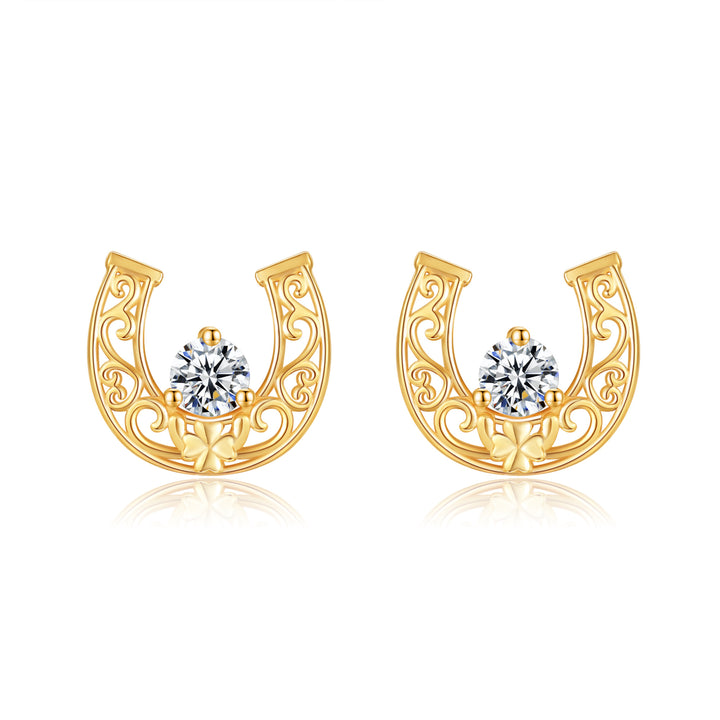 14K Gold Cubic Zirconia Horseshoe Stud Earrings