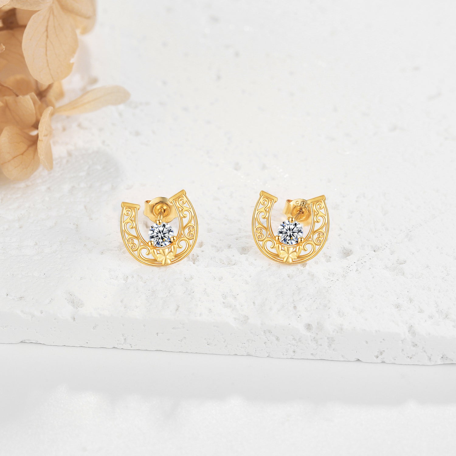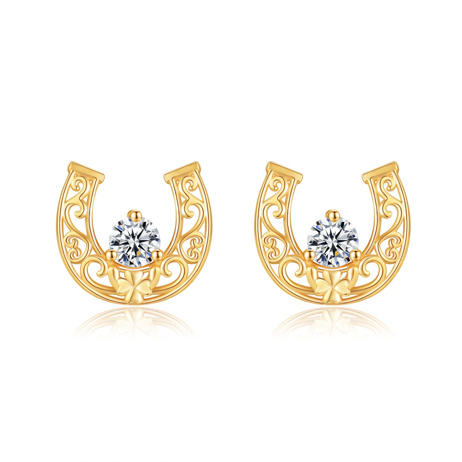 These 14K Gold Cubic Zirconia Horseshoe Stud Earrings elevate your elegance with a touch of sophisticated charm. Crafted from premium 14K Gold, they feature a timeless Horseshoe design, symbolizing good luck and protection. Adorned with dazzling Cubic Zirconia stones, they offer the look of luxury at an affordable price, making them a versatile and enduring addition for both casual and formal attire.