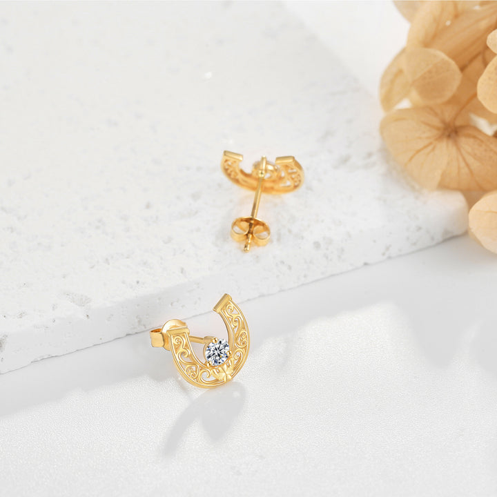 Crafted from premium 14K Gold, these Stud Earrings feature a timeless Horseshoe design adorned with high-quality Cubic Zirconia stones.