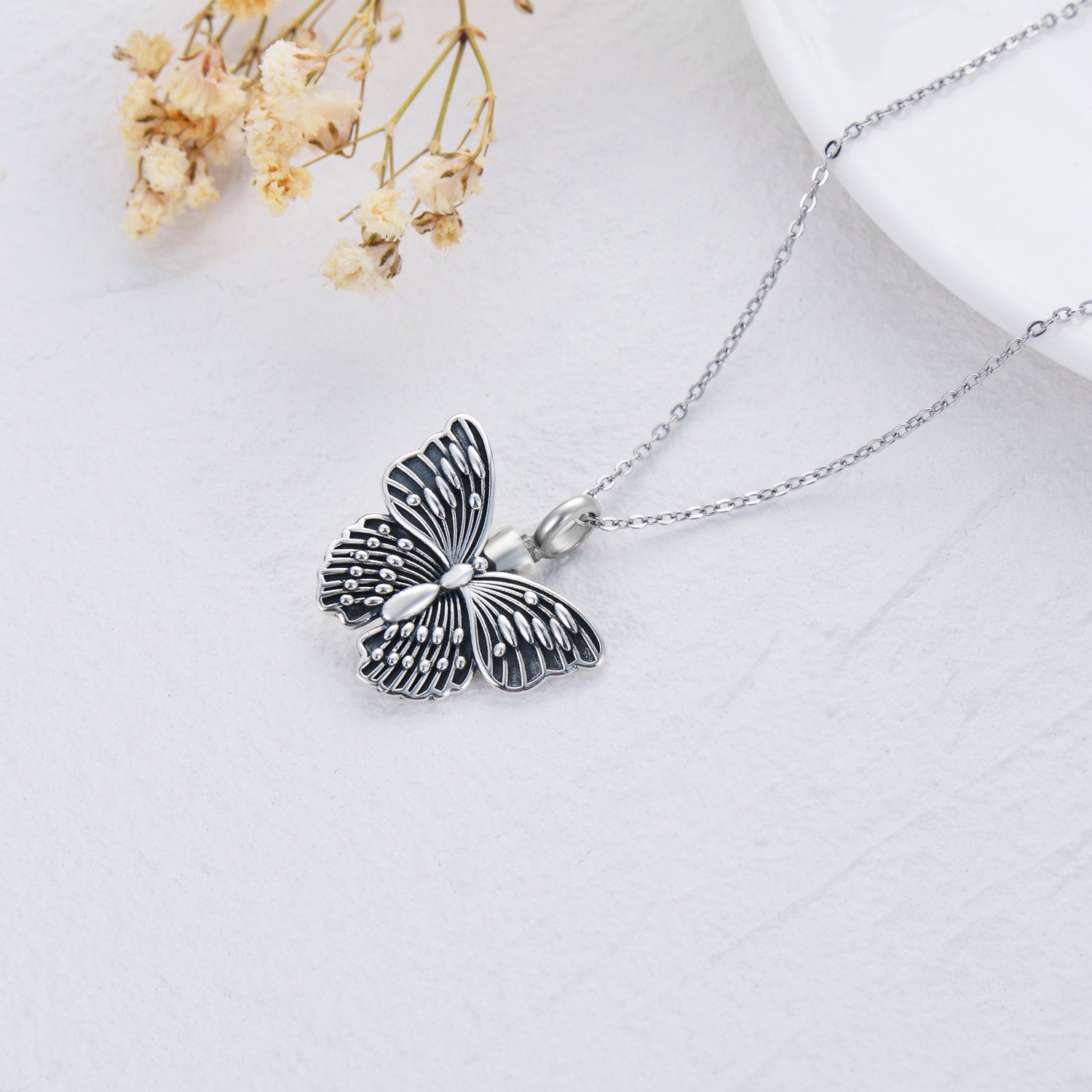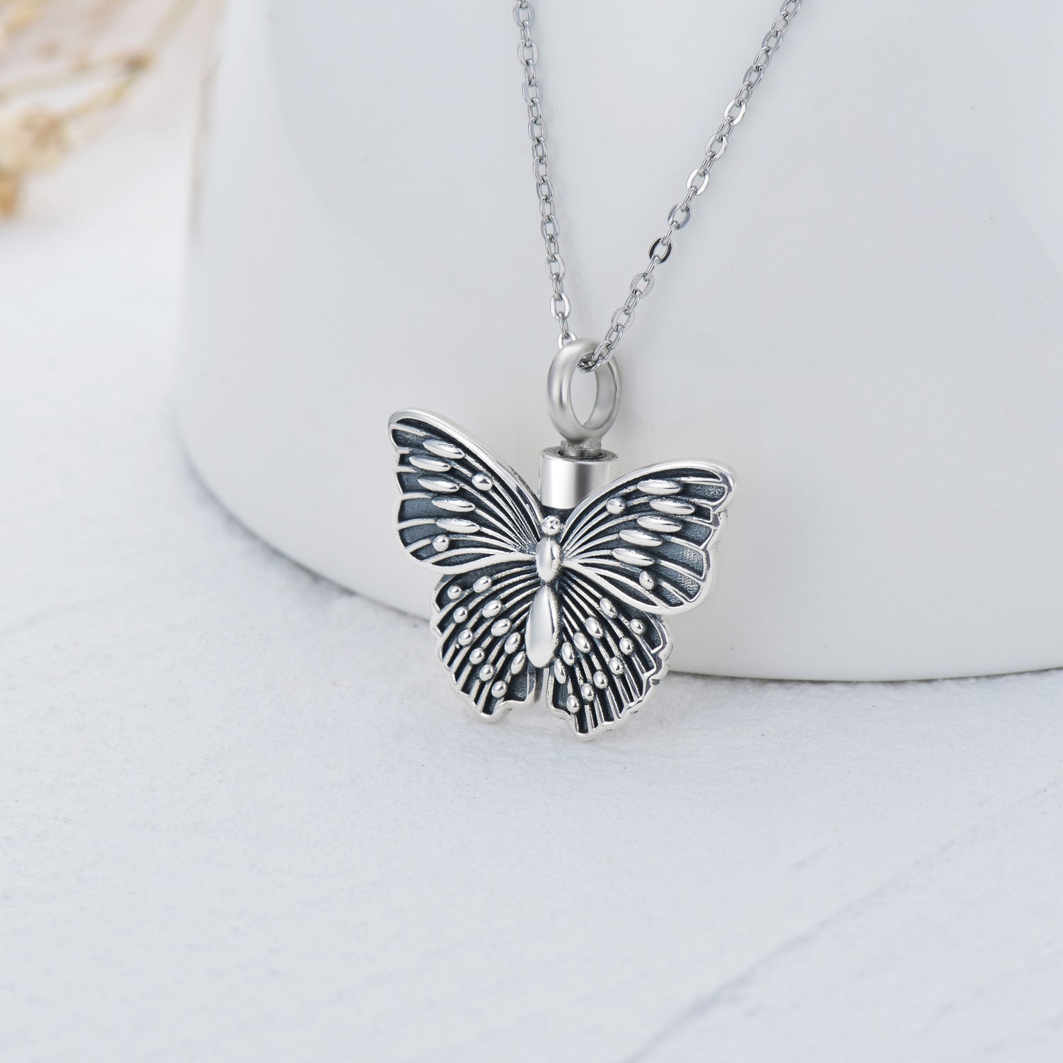 This no-stone Women's Pendant Necklace is Crafted from Sterling Silver with a Retro Silver Finish, featuring a Meticulously Detailed Butterfly.
