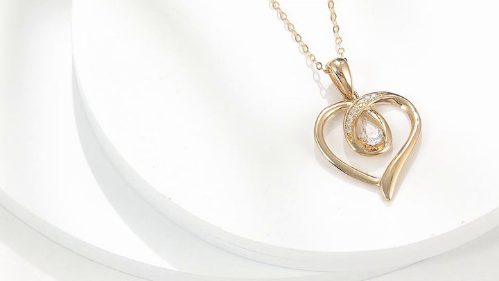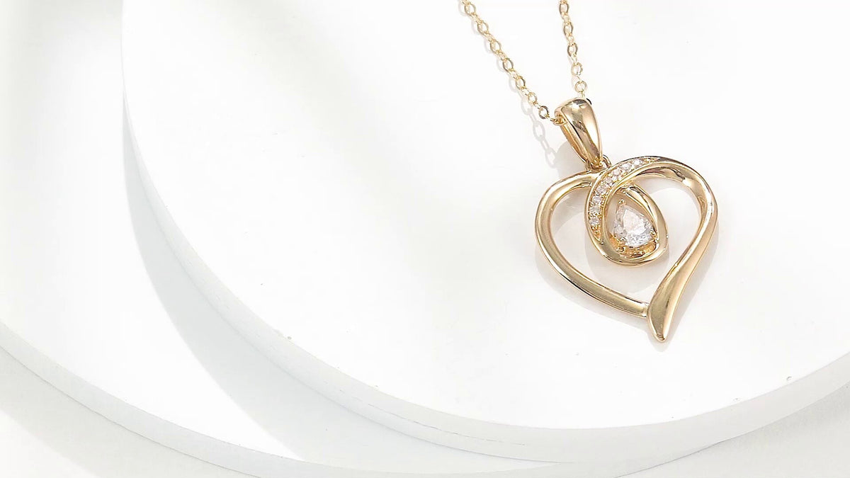 14K Gold Pear Shaped Cubic Zirconia Heart Pendant Necklace
