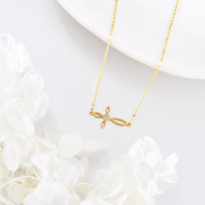 14K Gold Cubic Zirconia Cross & Witch Knot Pendant Necklace