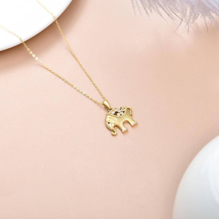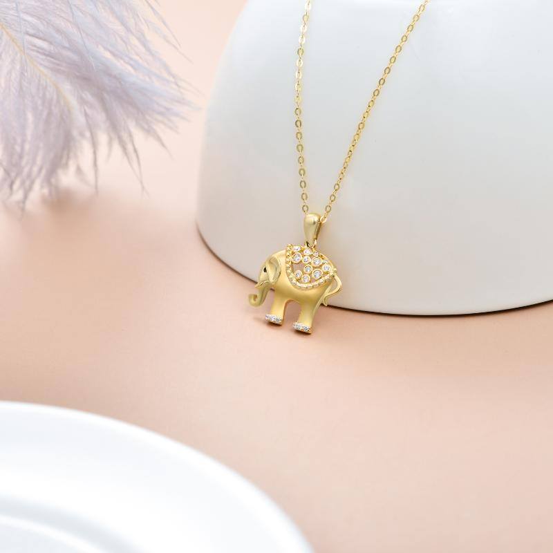 This 14K Gold Moissanite Elephant Pendant Necklace by YFN is a perfect blend of elegance and whimsical charm. Crafted from luxurious 14K Gold, it features a charming Elephant design, symbolizing wisdom and good fortune. The piece is meticulously set with dazzling Moissanite Stones, offering unmatched brilliance and durability for a versatile and meaningful addition to any collection.