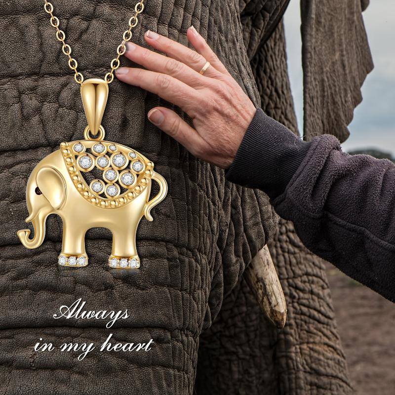 Crafted from luxurious 14K Gold, this Pendant Necklace features a charming Elephant design and is meticulously set with dazzling Moissanite Stones.