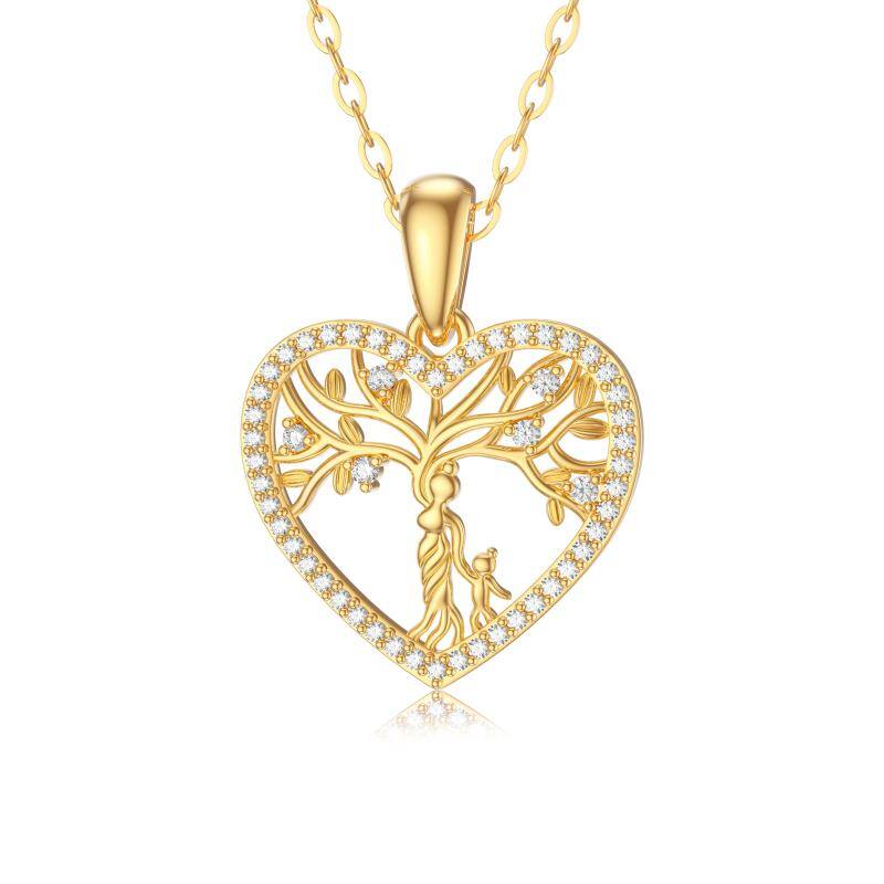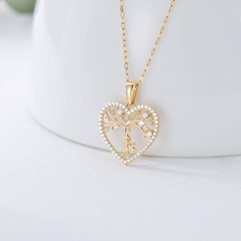 14K Gold Moissanite Tree Of Life & Mother Pendant Necklace