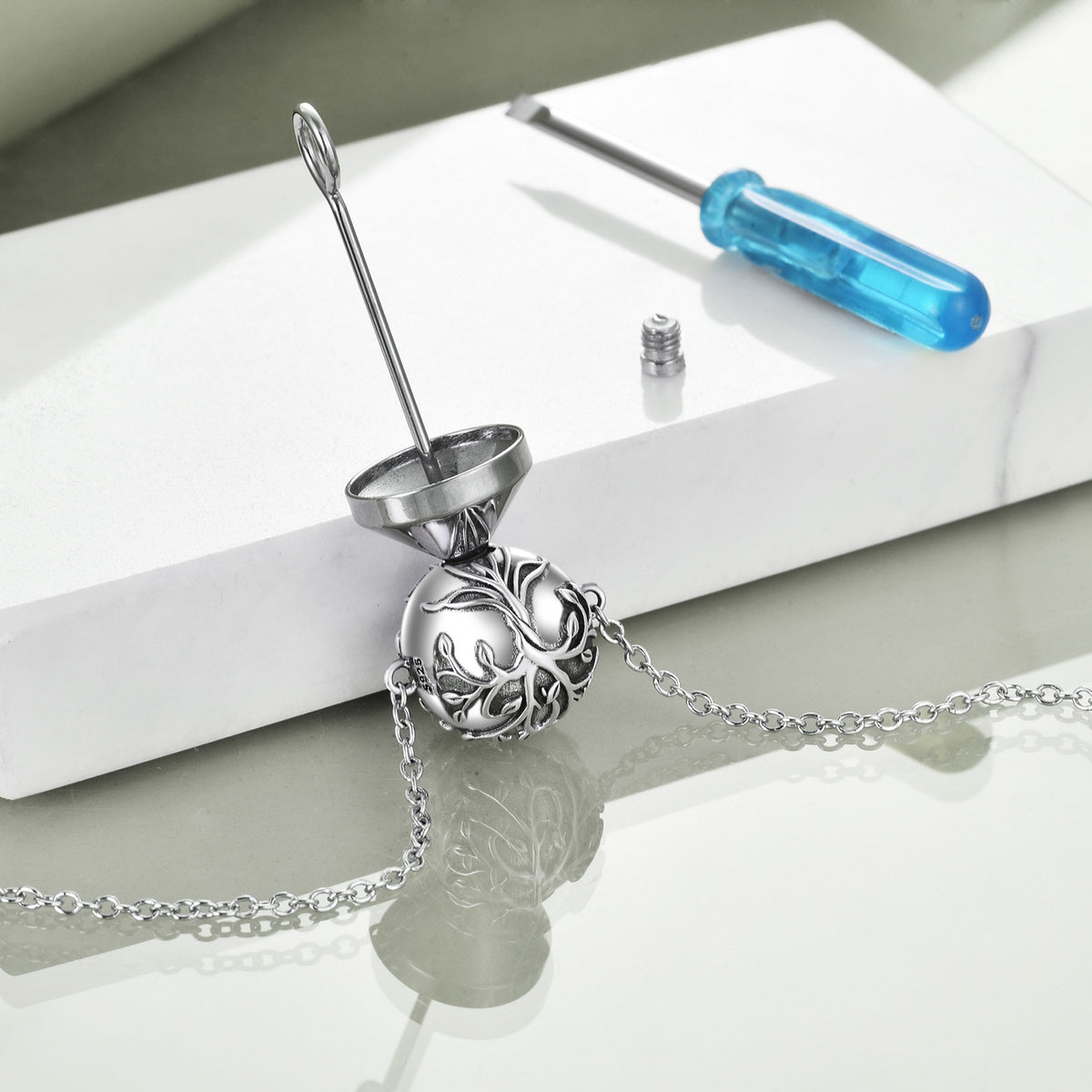 This no-stone Women's Urn Bracelet (for Ashes) is Made of Sturdy Sterling Silver with a Retro Silver Finish, featuring a Tree of Life Design.