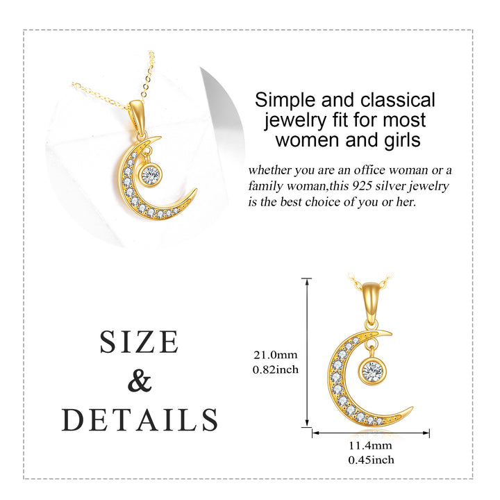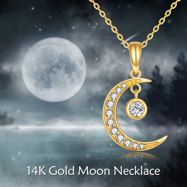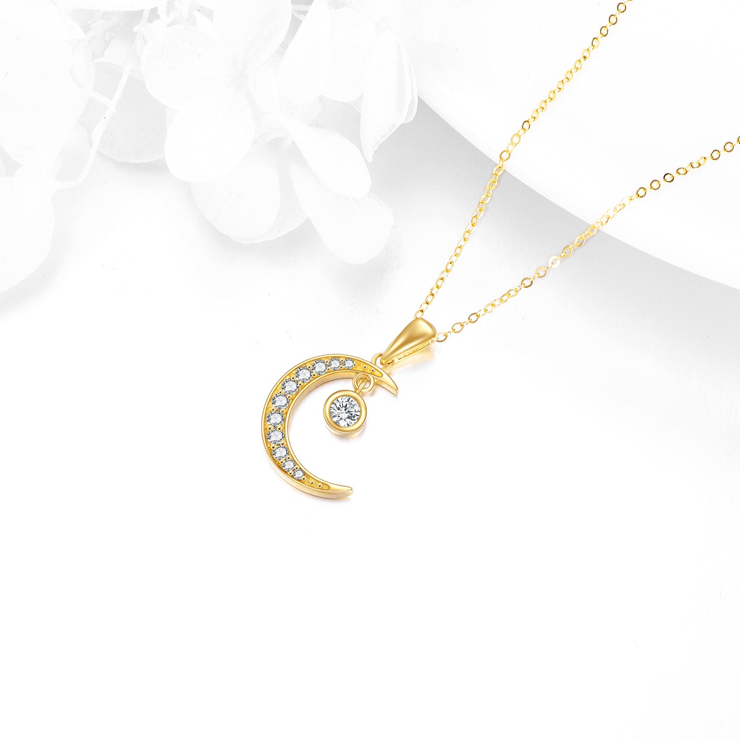 14K Gold Round Cubic Zirconia Moon & Sun Pendant Necklace