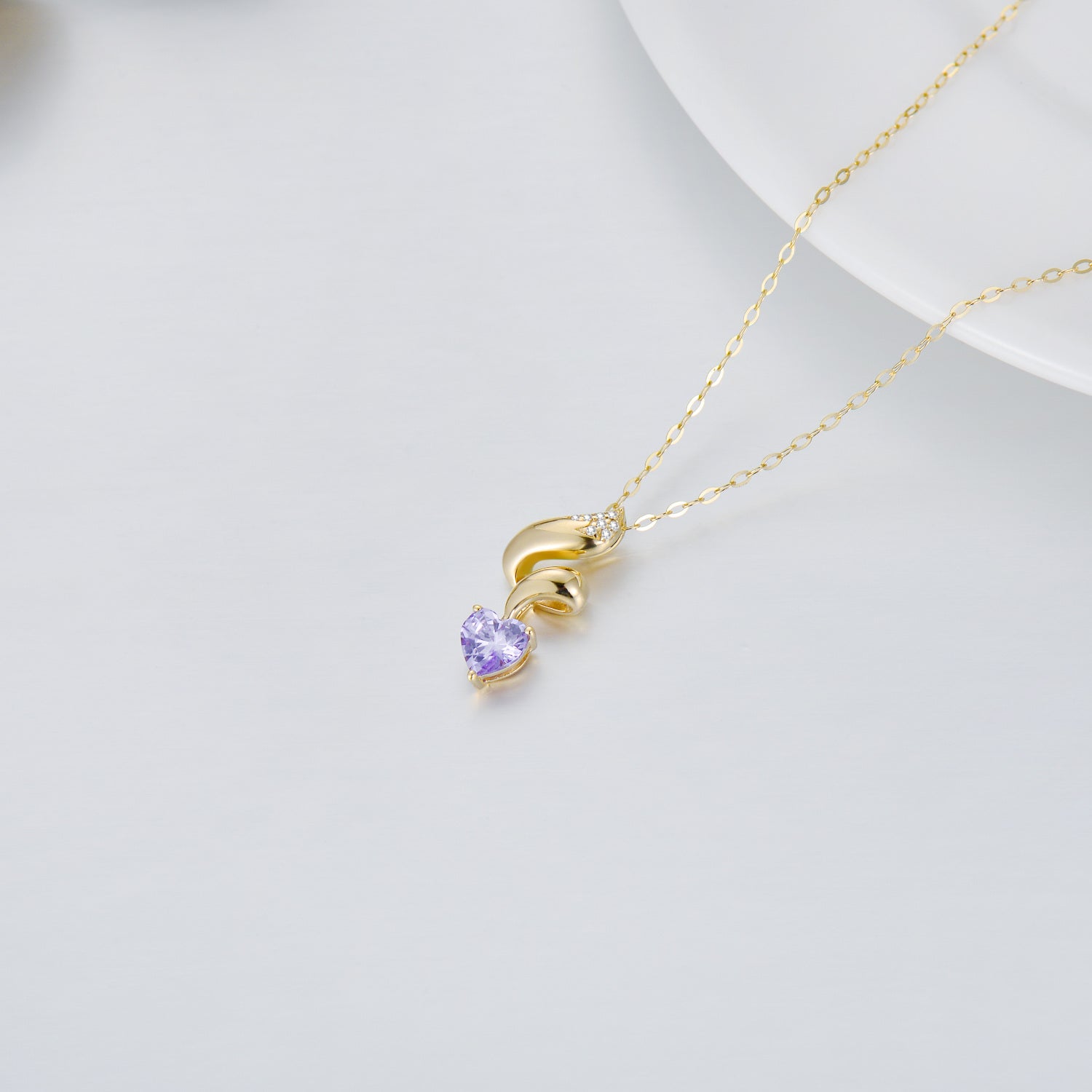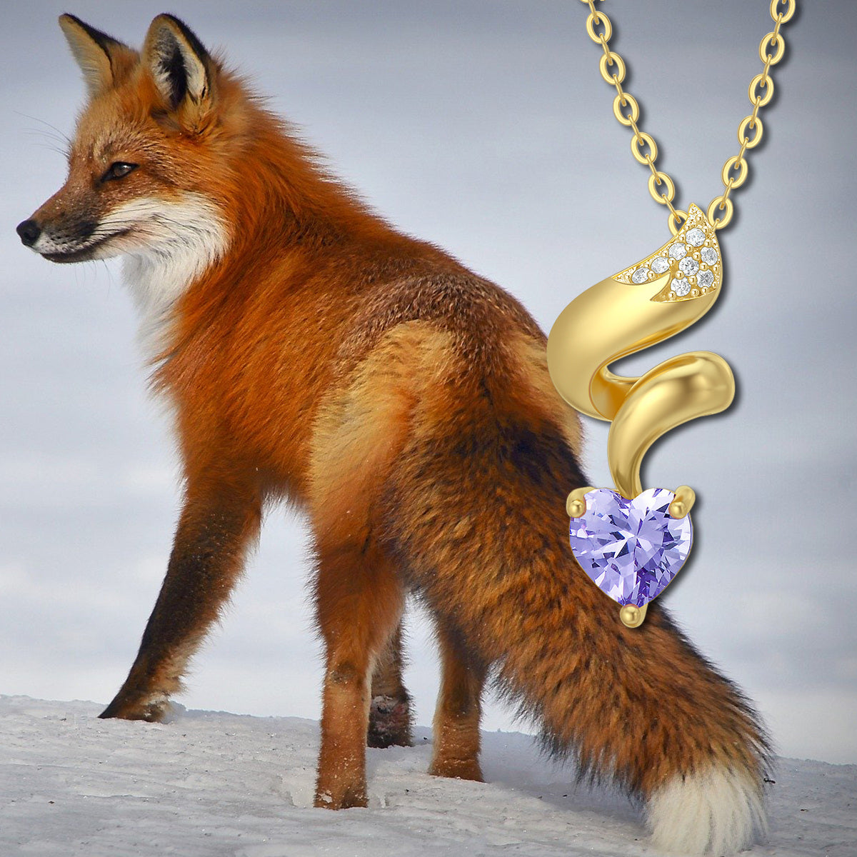 14K Gold Heart Cubic Zirconia Fox Pendant Necklace