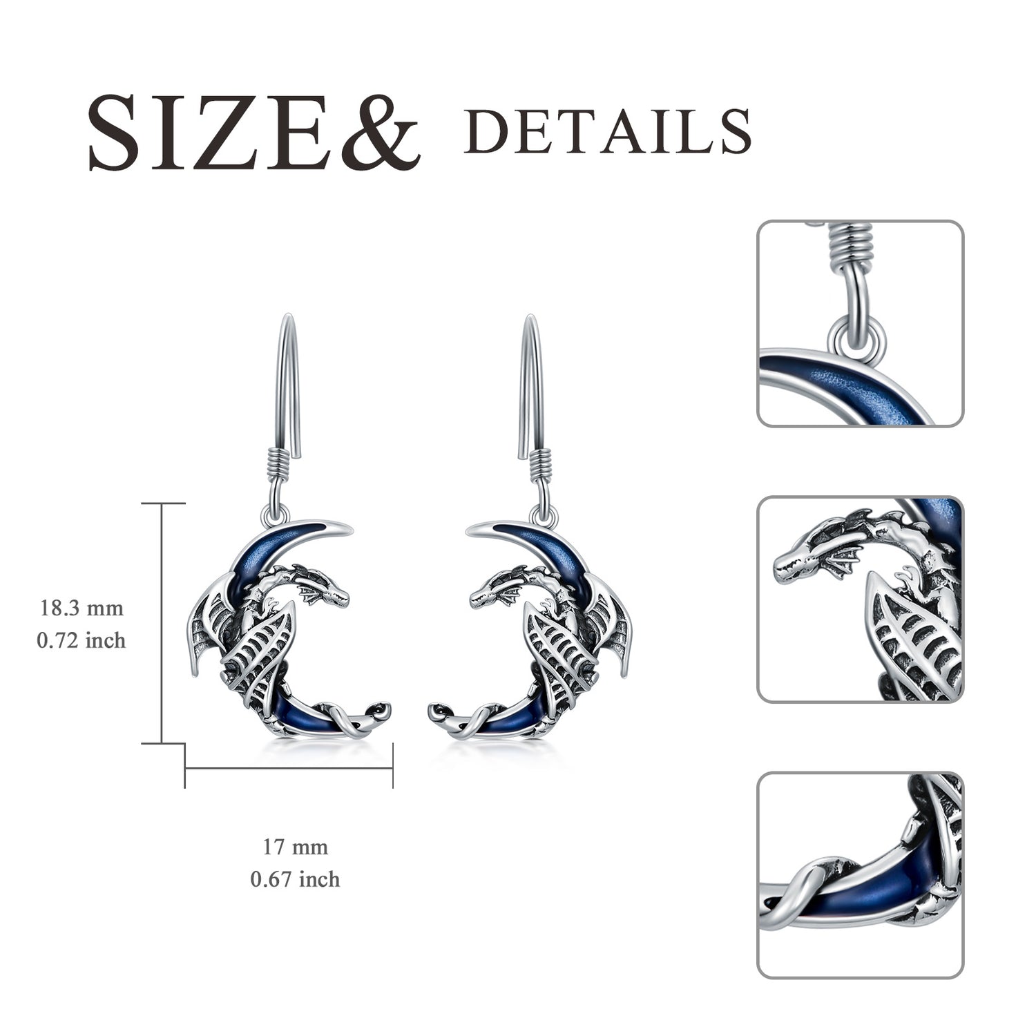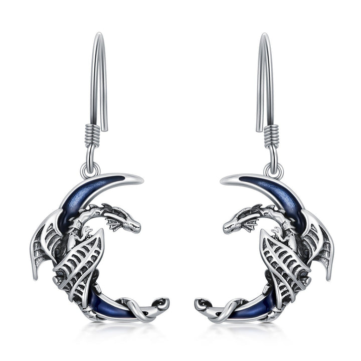 These no-stone Women's Drop Earrings are crafted from High-Quality Sterling Silver with a Retro Finish, featuring an Enchanting Dragon and Moon Design.