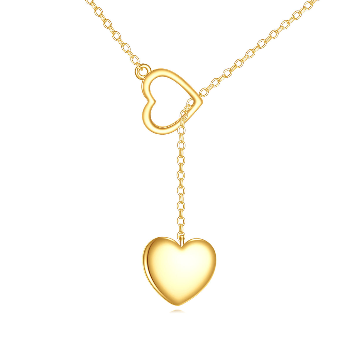 This no-stone Adjustable Y Necklace is crafted from Genuine 14K Gold and features a Charming Heart Pendant.